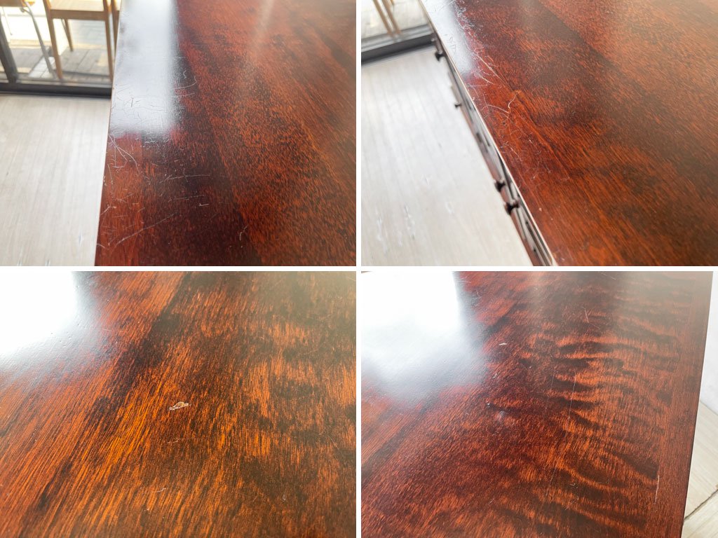 使用に伴う細かな傷や擦れ、ペイントロスや塗装ムラなどが複数見受けられます。また、抽斗内に多少のシミや汚れなどがございますが、大きく目立つようなダメージなども無く、ご使用に問題のある箇所などもございません。これからも安心してご使用頂けるコンディションを保っております。