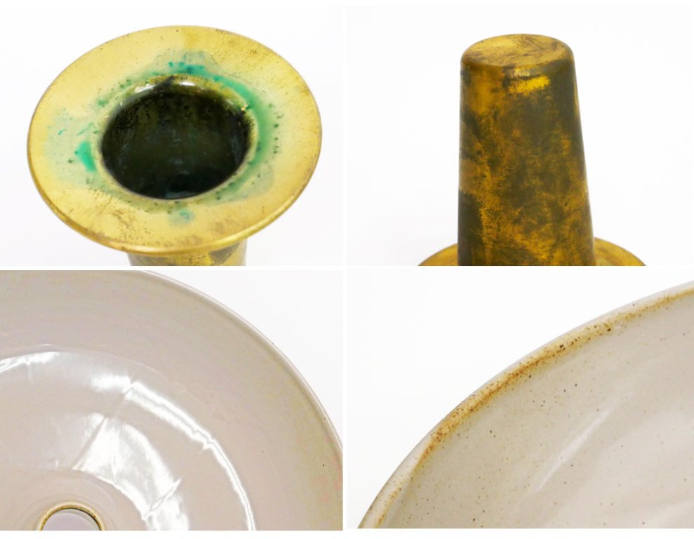 使用に伴う、微細な擦れや傷、輪染み、金属部のサビや取り切れない汚れ、製造時に出来たと思われる釉薬の色ムラや焼きムラ、凹凸などがございます。その他外箱に染みやボンド跡などが見受けられますが美観を損ねるような大きなダメージはございません。これからも問題なく実用頂けるコンディションを保っております。