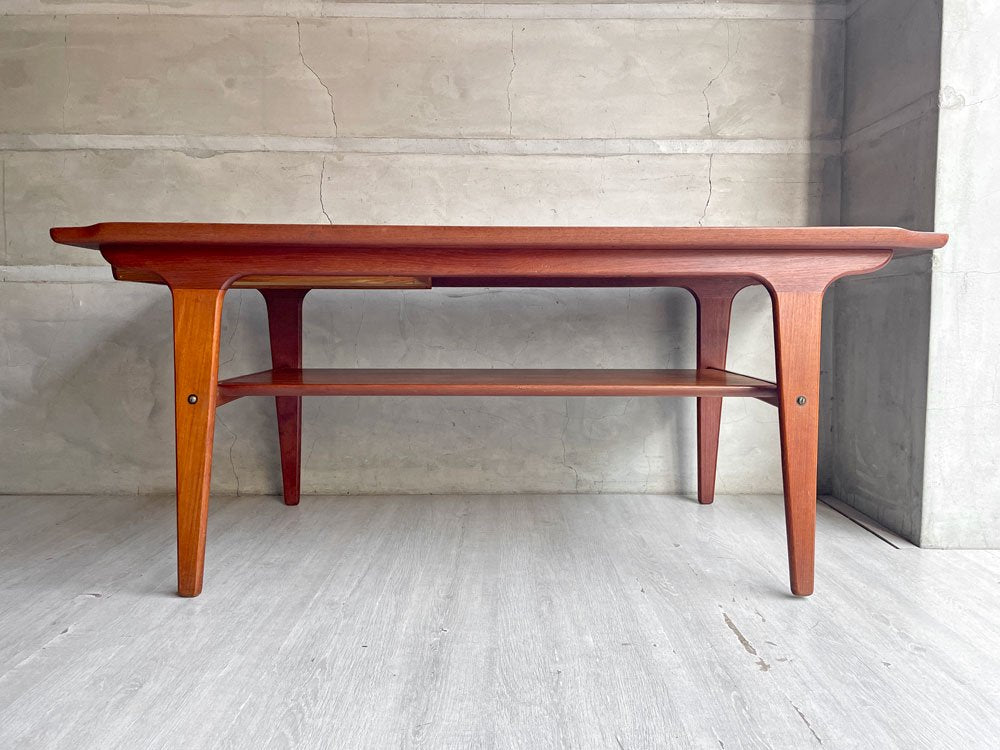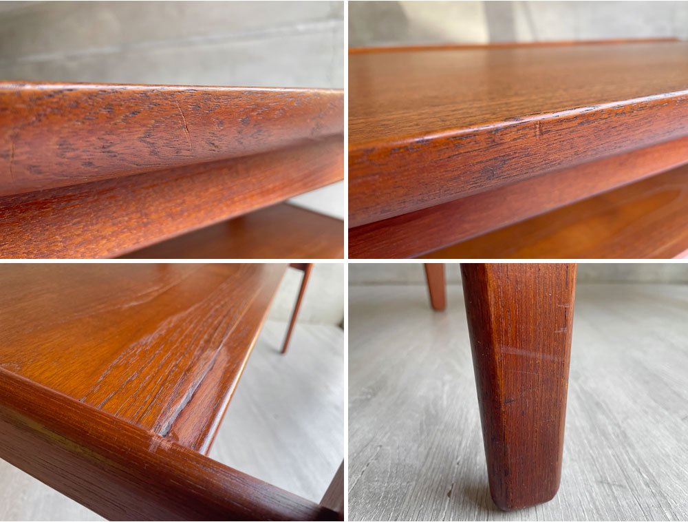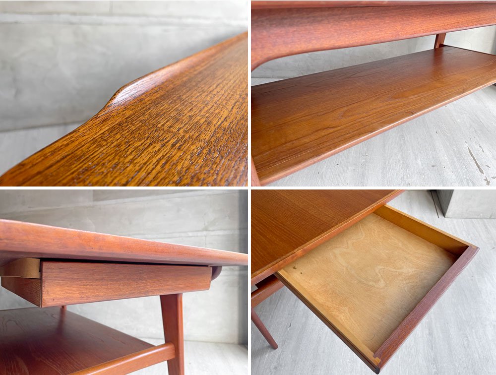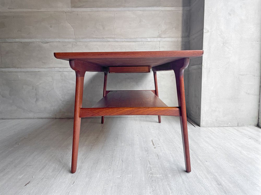 デンマークビンテージ Danish Vintage チーク材 センターテーブル コーヒーテーブル W133 引き出し付き マガジンラック 真鍮 北欧家具 ♪