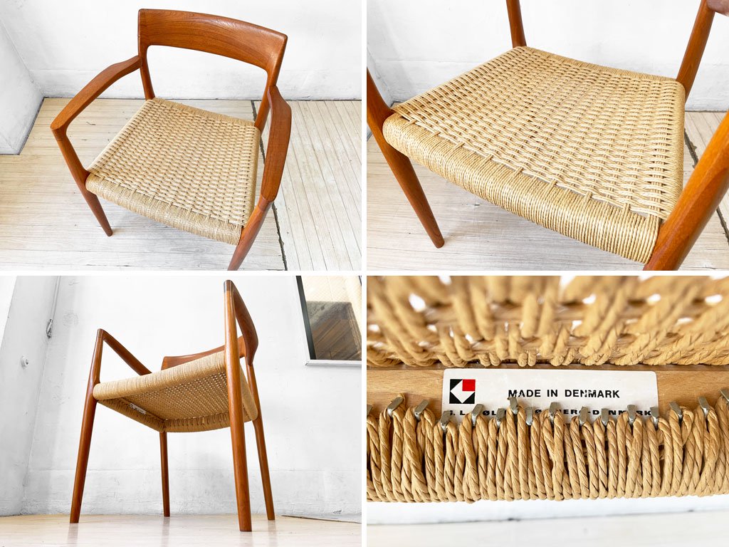 J.L.モラー J.L. Mollers Model No.57 チーク材 ダイニングチェア アームチェア ペーパーコード座面 ニールス・O・モラー デンマーク 北欧ビンテージ ★