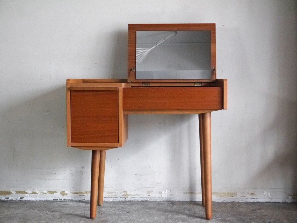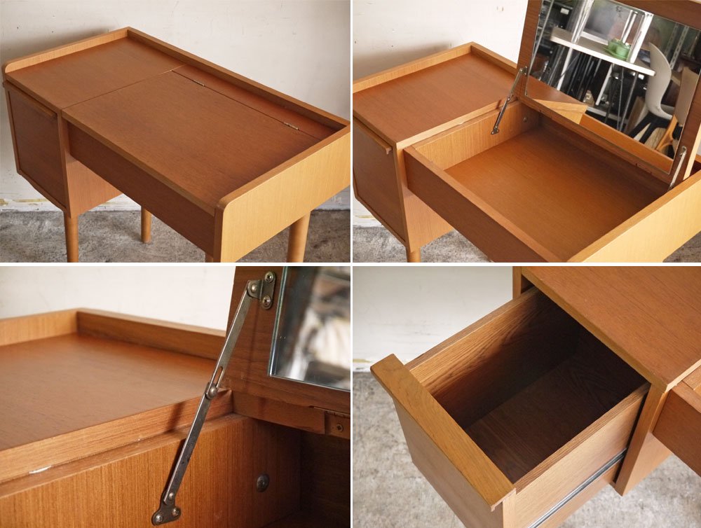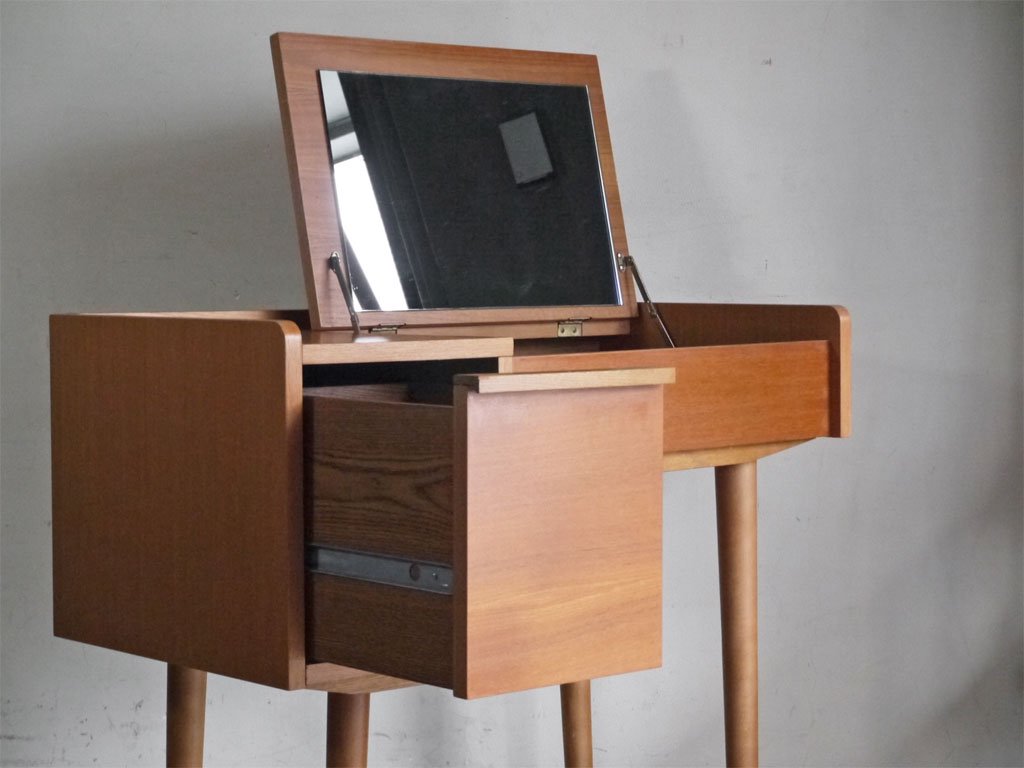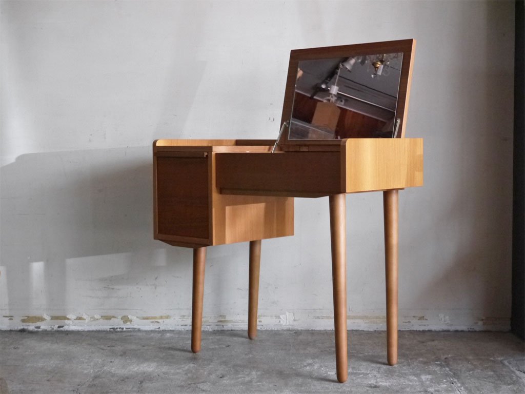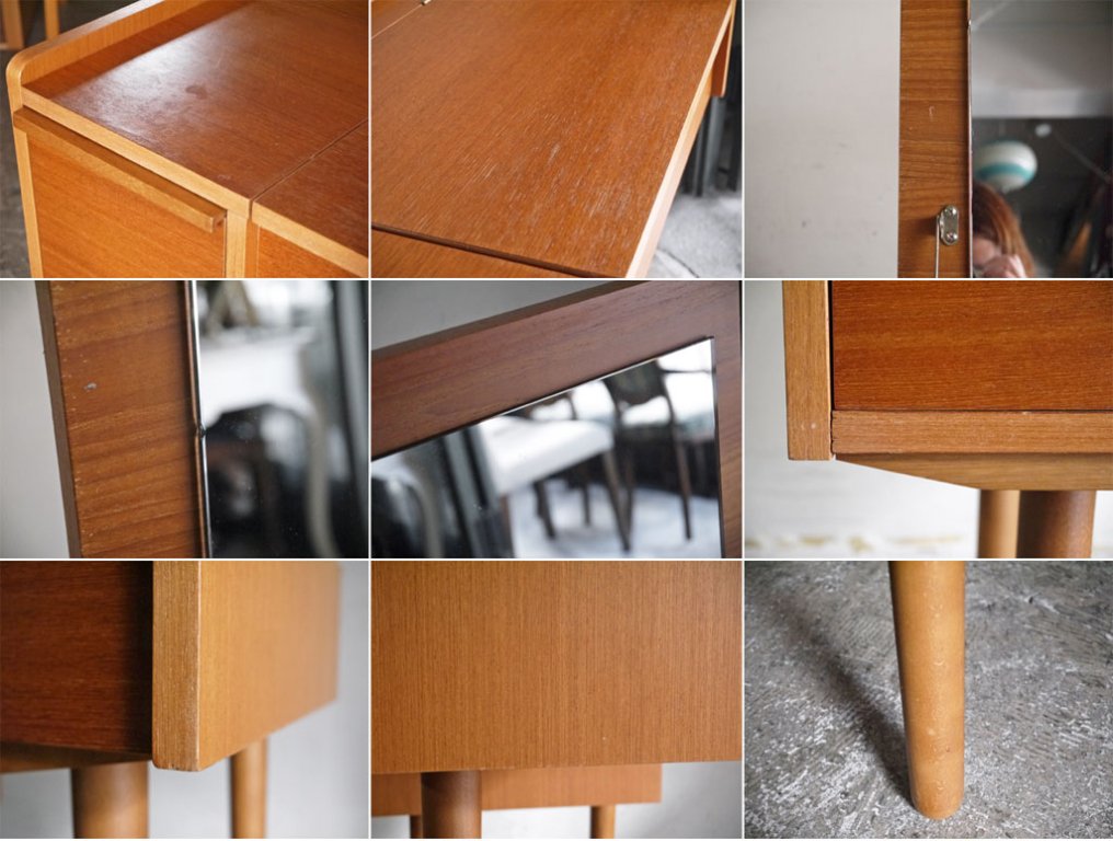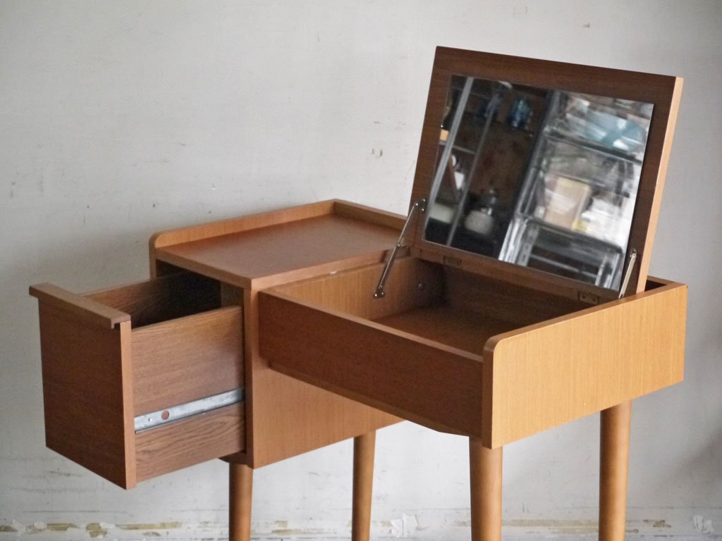 使用に伴い、天板に軽微な擦れと角度によって見えるくすみ、外装や脚部に小さな傷、収納部に擦れと鏡に僅かな欠けと小傷が見受けられます。