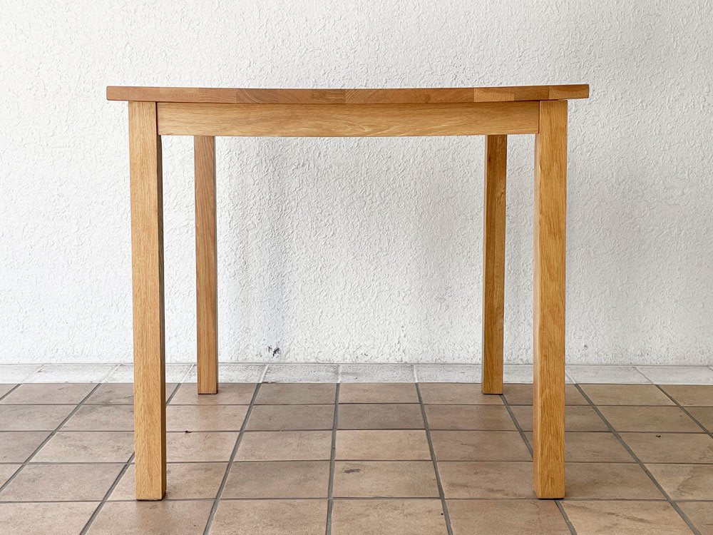 大きさはW80×D80cmとお二人様にぴったりのサイズとなっており、オーク特有の綿密で上質な肌目、明るくも柔らかな色合い、透明感に満ちた杢目は毎日のダイニングシーンに心地よいアクセントを添えてくれます。