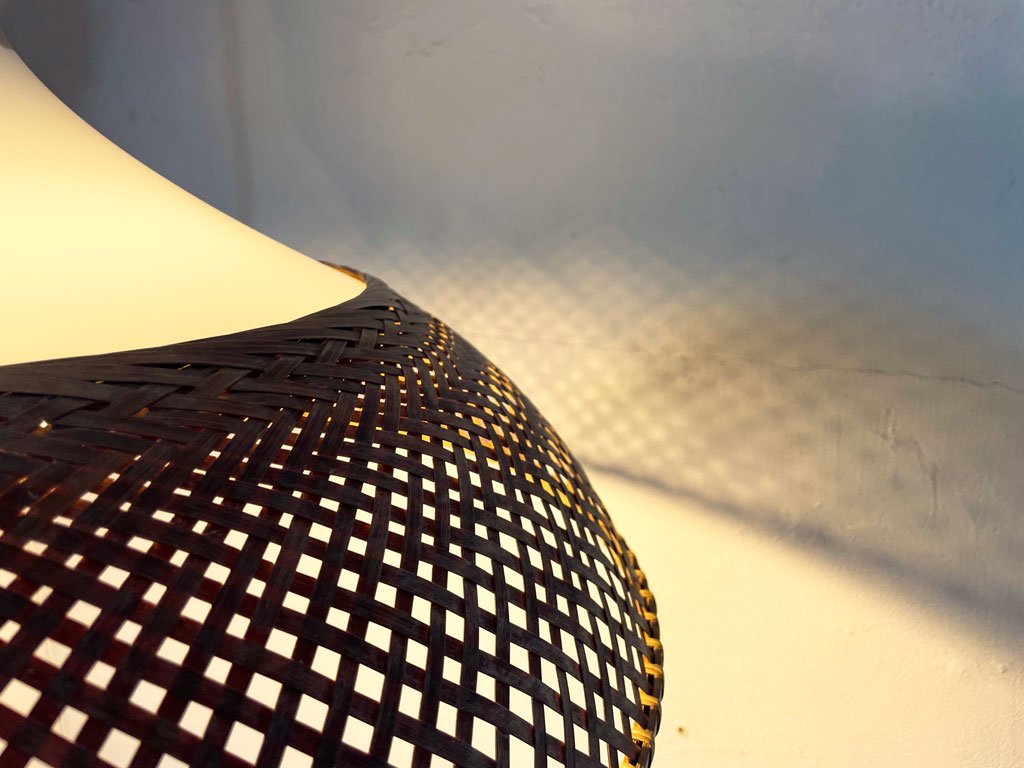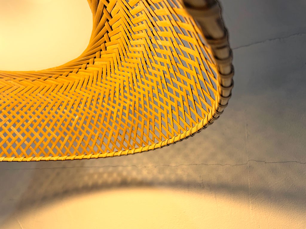 四つ目で編まれた竹と成型アクリルで構成された一体型のシェードは、竹特有の張り感がある美しい曲線フォルム。