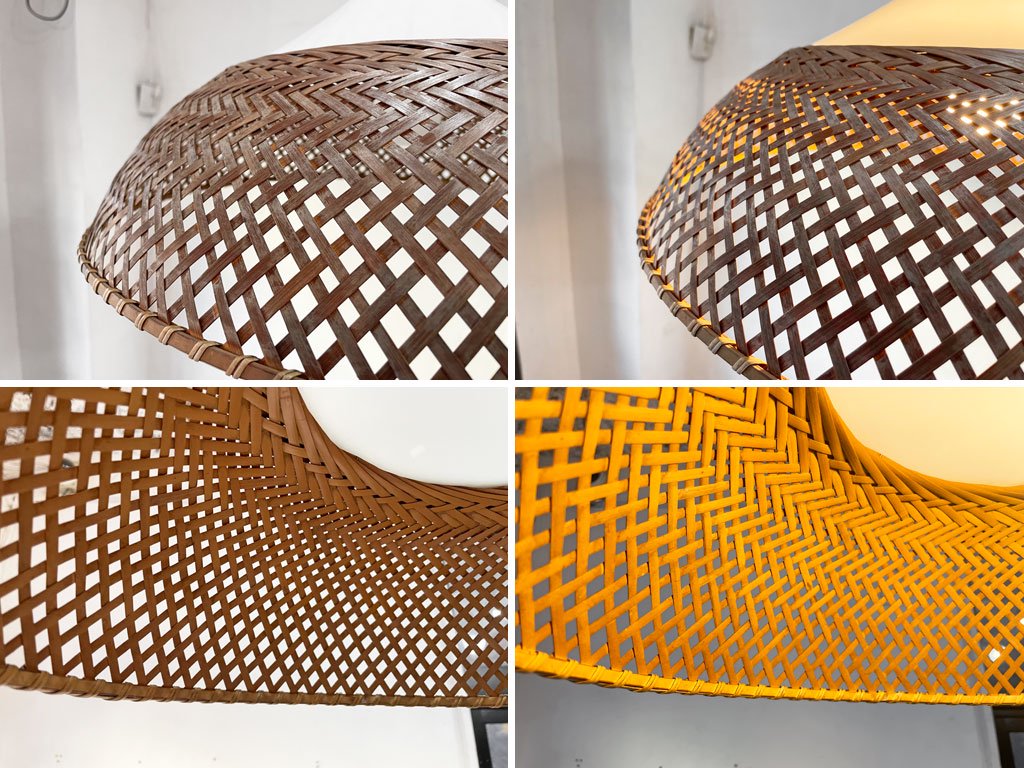 経年により美しい飴色へと変化した竹のシェードの風合いも魅力のひとつとなっており、繊細に編み込まれた竹の隙間からこぼれる光は、まさに空間の芸術品。
