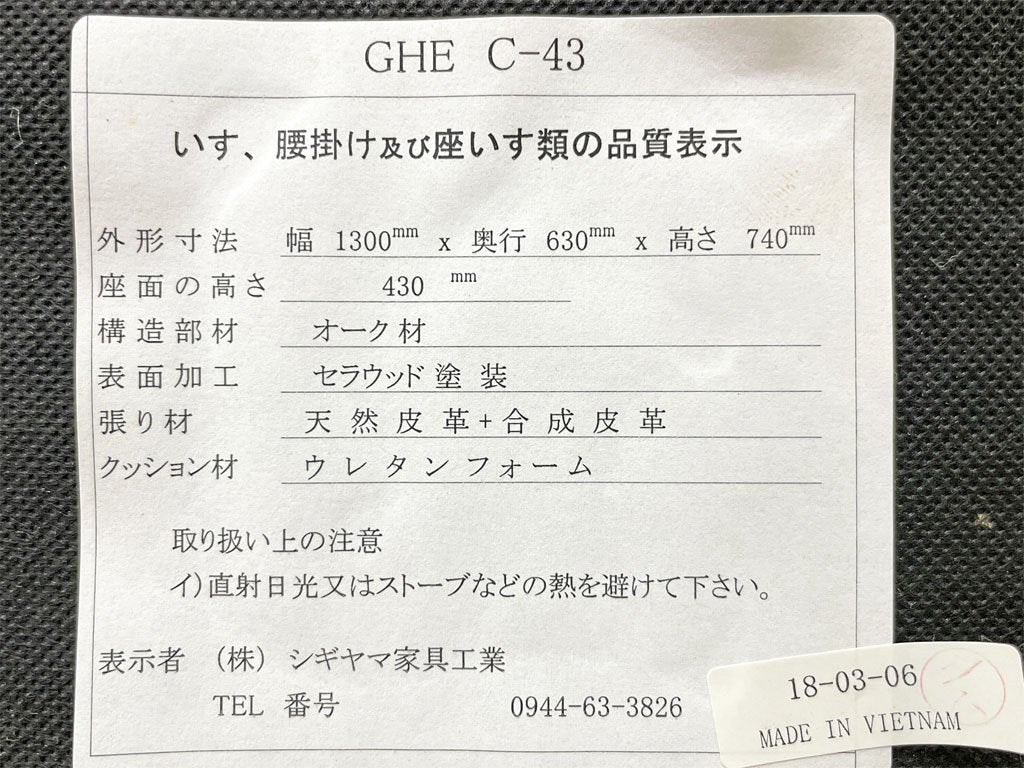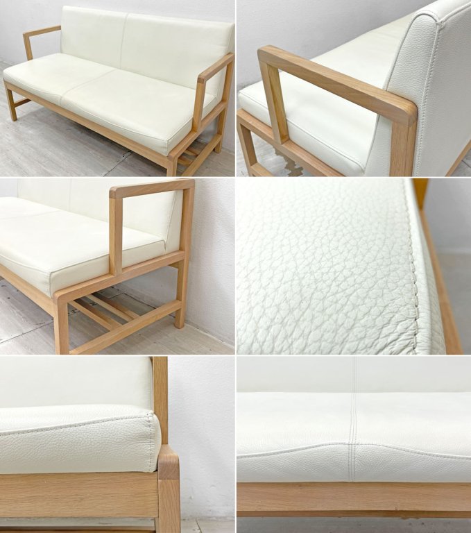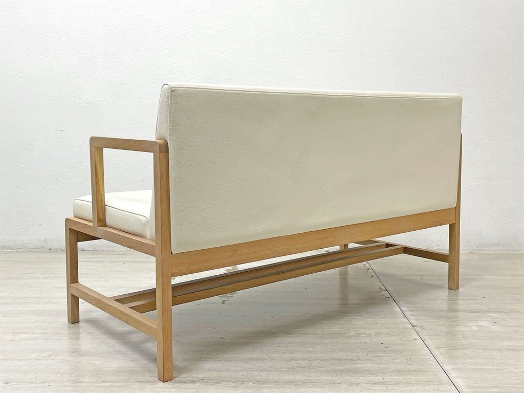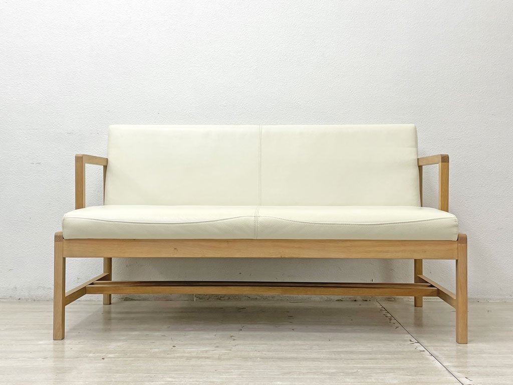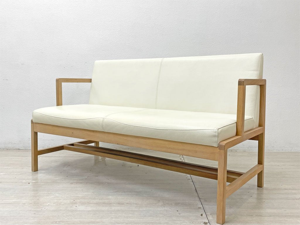 シギヤマ家具 SHIGIYAMA シティシリーズ LDベンチ 2人掛けソファ オーク材 レザー C-43 ホワイト 岩倉榮利 廃番 参考価格¥77,300~ ●