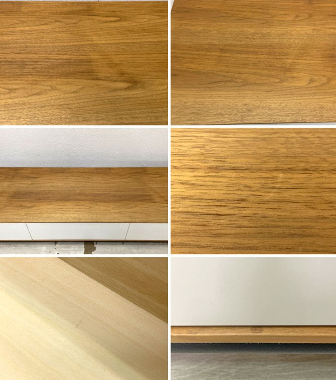 使用に伴う僅かな擦れや線傷、取り切れない汚れがございます。また、天板には設置痕による色焼けがございます。抽斗や扉の動作はスムーズに行え、ガタツキ等の目立つ様な大きなダメージは無く、これからも安心してご使用いただけるコンディションを保っております。