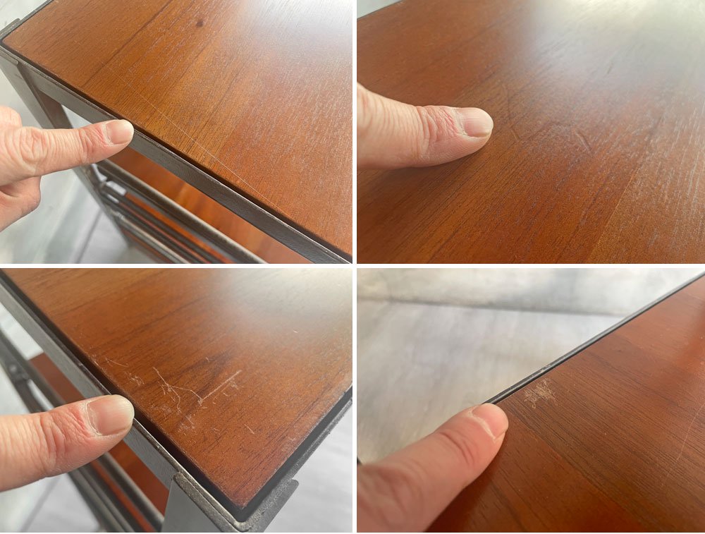 使用に伴い、棚板には線傷や擦り傷、角の欠けが見られるものの、通常使用に支障を来すような不具合はございません。