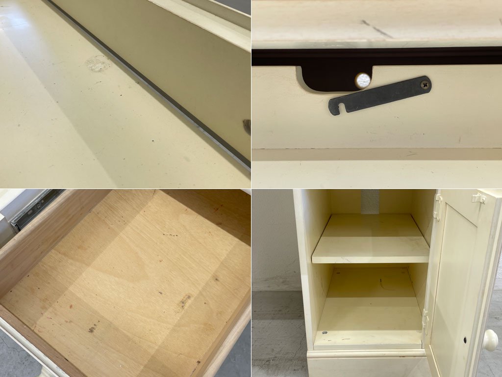 ドロワー内には使用感や取り切れない塗装が溶けた痕などがございます。