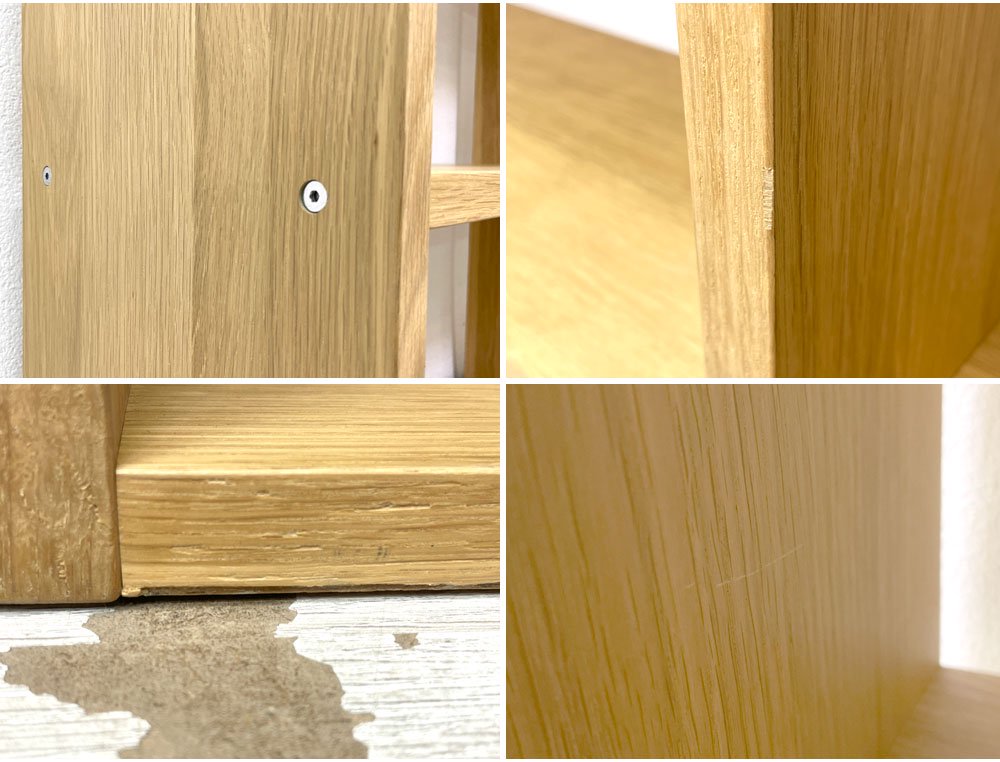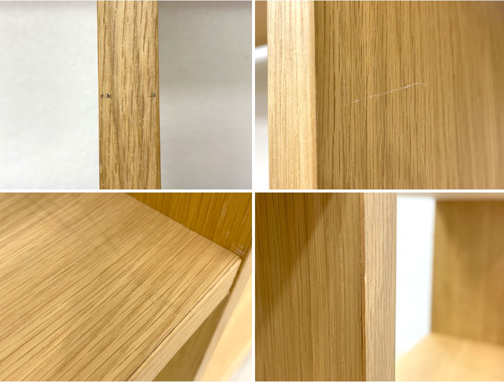 棚板の各所に軽微な小傷、線傷突板の剥がれが散見されますが著しく目立つようなダメージは無く、USED品としては概ね良好なコンディションを保っております。