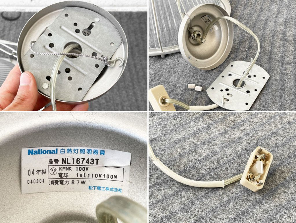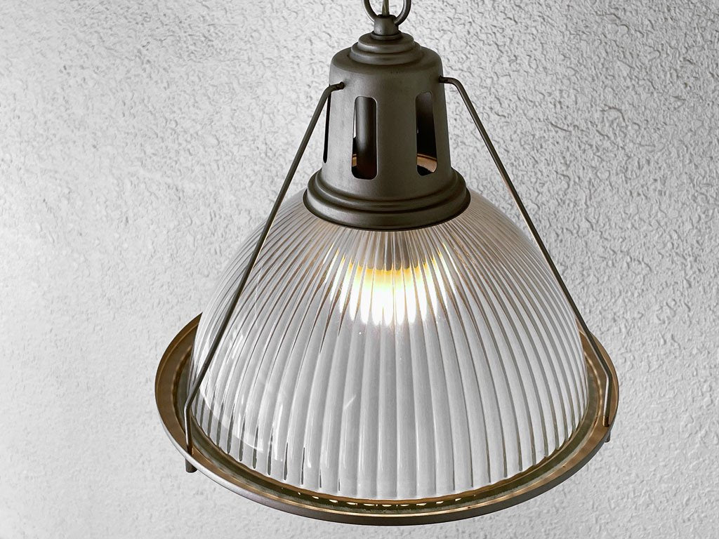 光源を大きく包むガラスシェードは波型に凹凸を付けたプレスガラス。