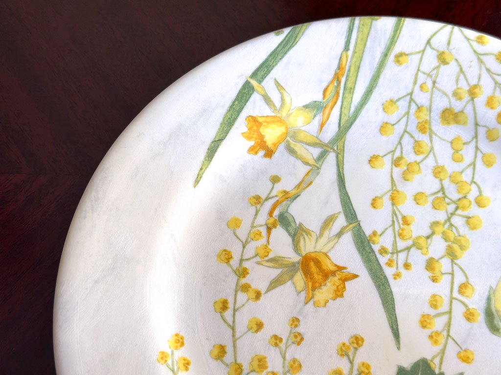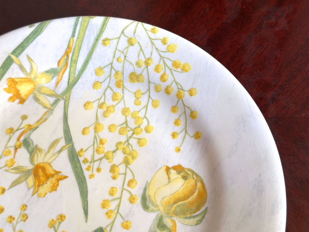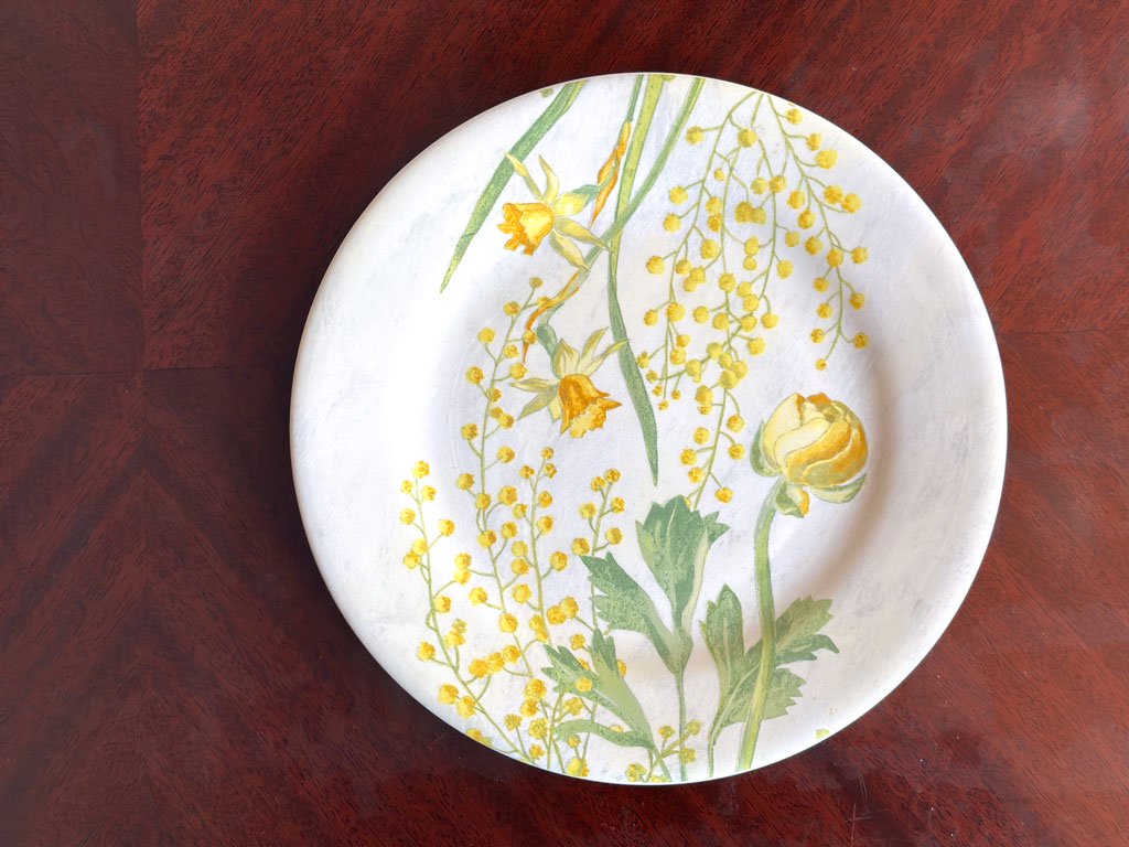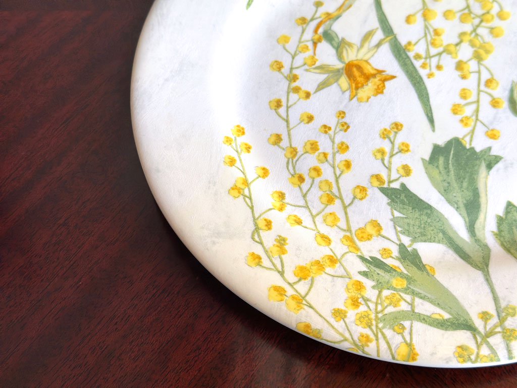 ミモザの花が咲き誇る様子を描いたこのプレートは、花言葉である「優雅さ」を表現しています。