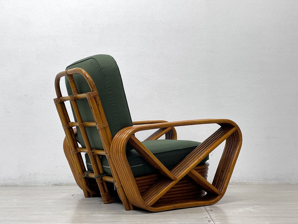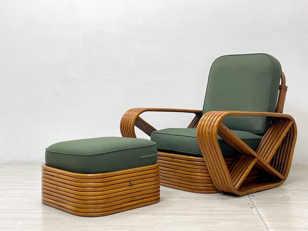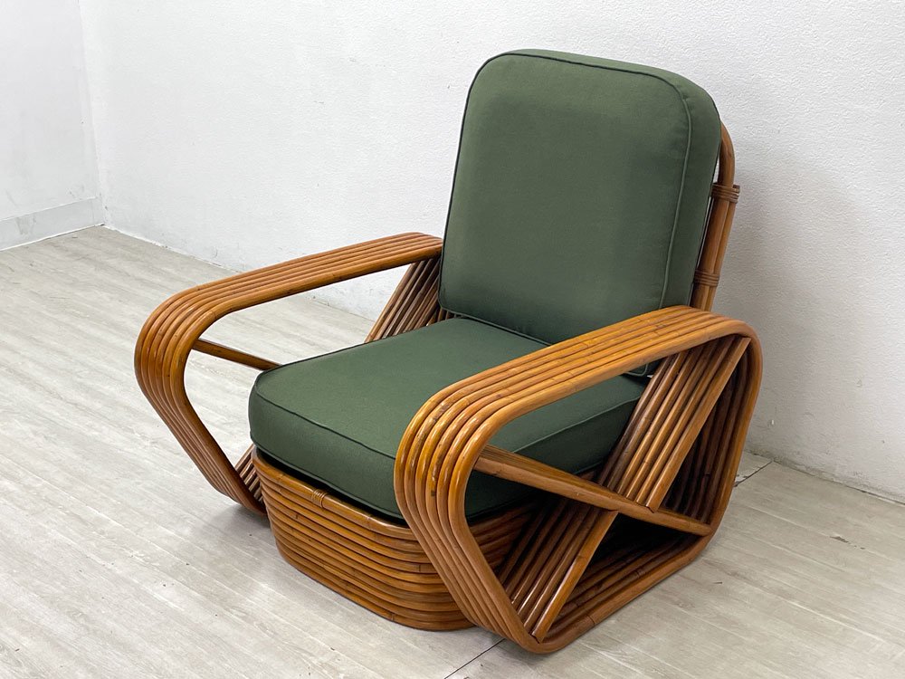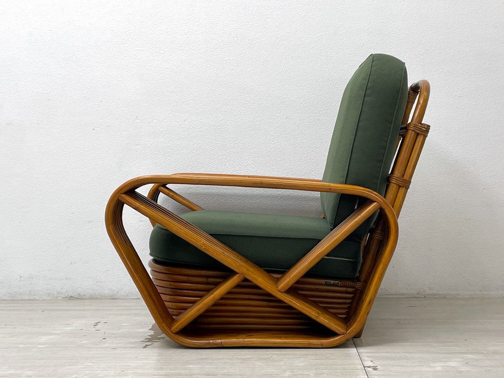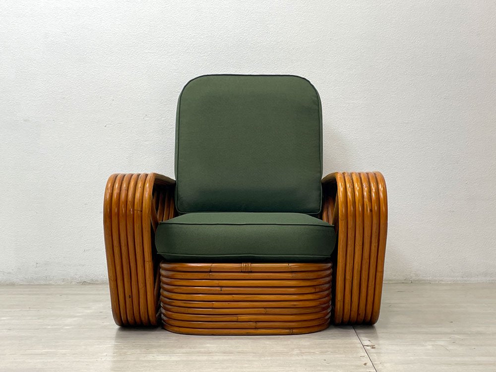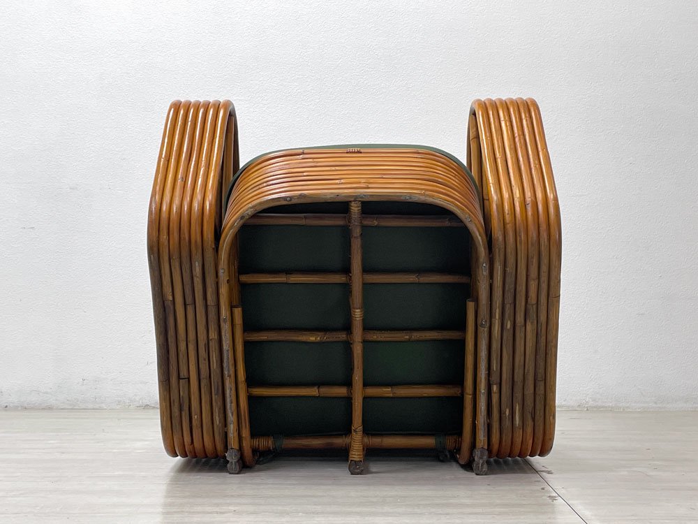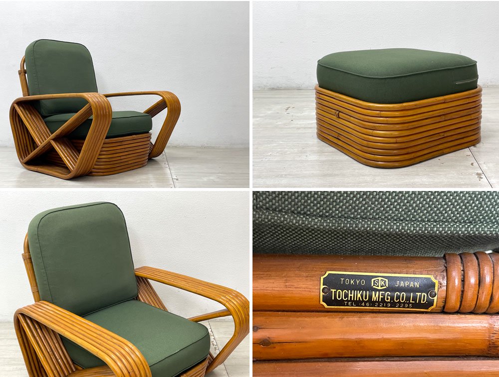 ポール・フランクル Paul Frankl スタイル プレッツェル アームソファ 1P オットマンセット ラタン グリーン ファブリック トーチク工業 TOCHIKU 50~60年代 ビンテージ ●