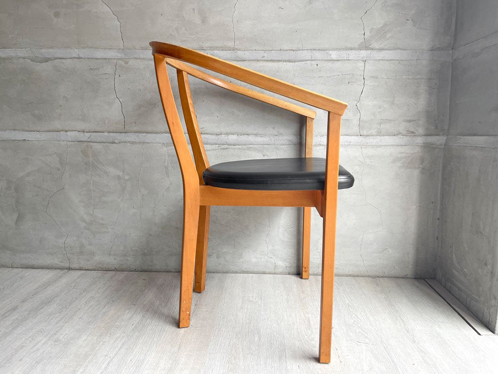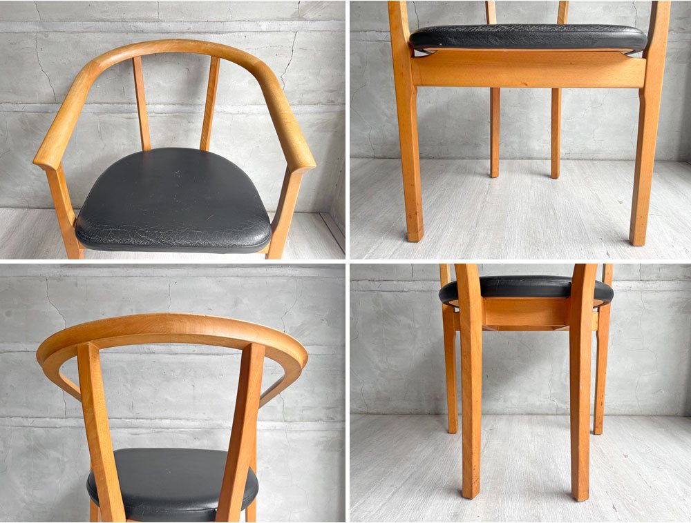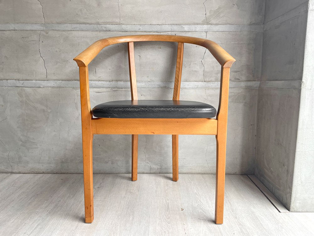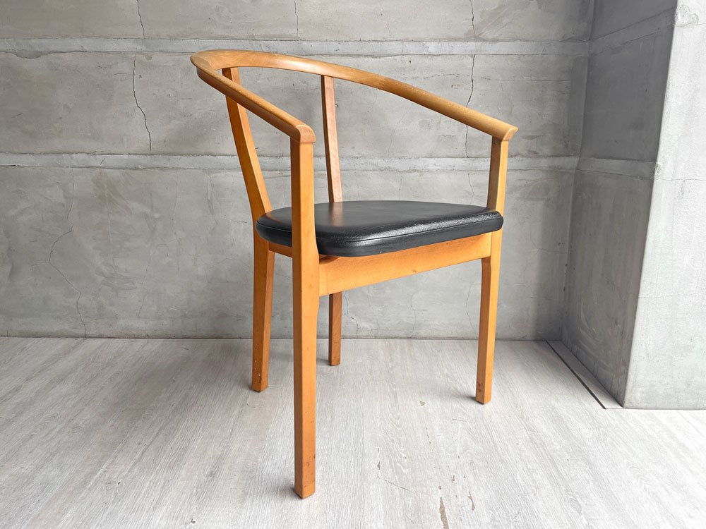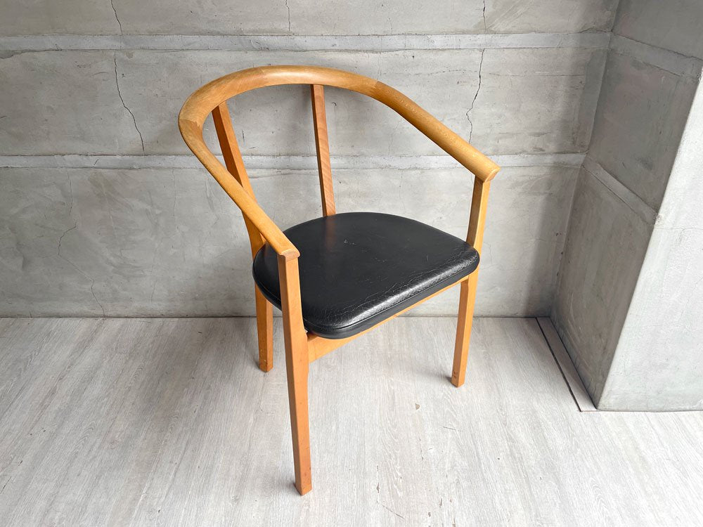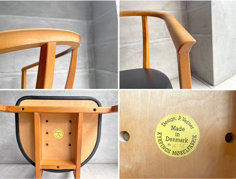 キルピングス モベルファブリック Kyrpings Mobelfabrik U-55 アームチェア P.Verner ビーチ材 本革 デンマーク 北欧ビンテージ A ♪