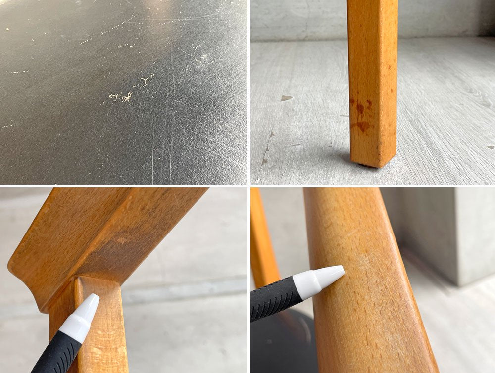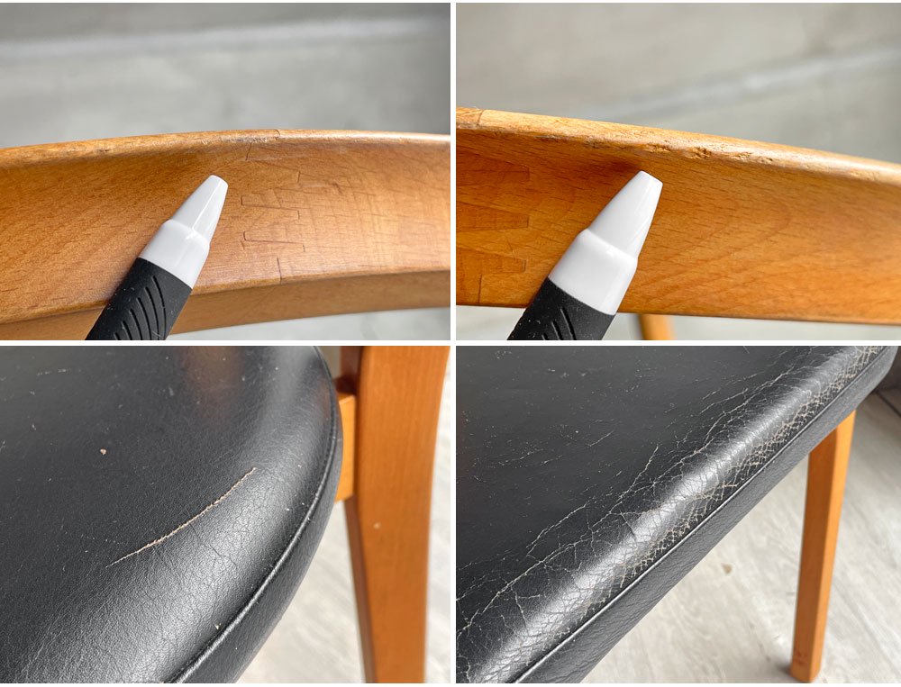 使用に伴い、レザーの座面には軽度なひび割れや擦れ等の小傷、フレームには擦れや打痕、黒ずみが見受けられます。その他グラつきなど大きなダメージは無く、これからも実用頂けるコンディションを保っております。