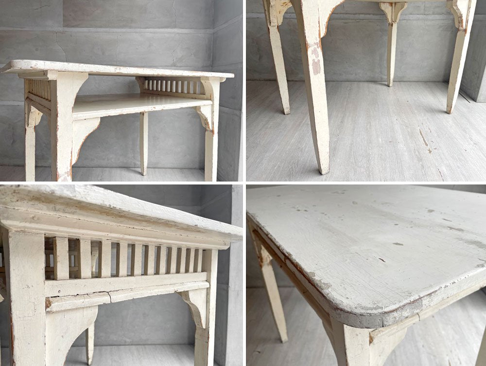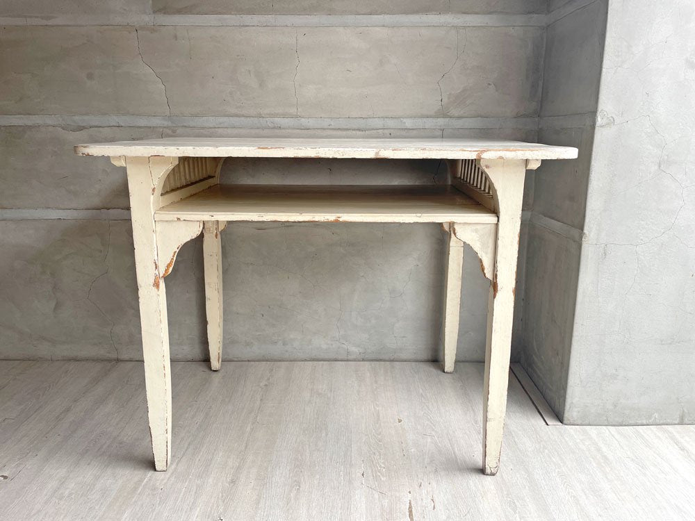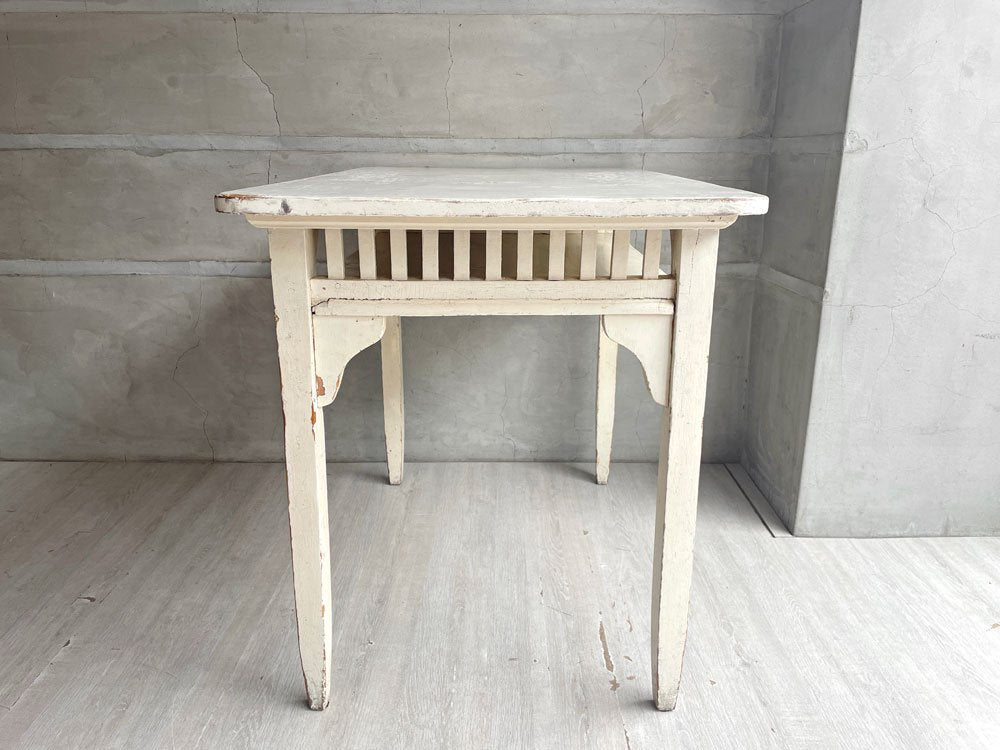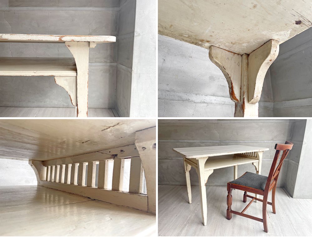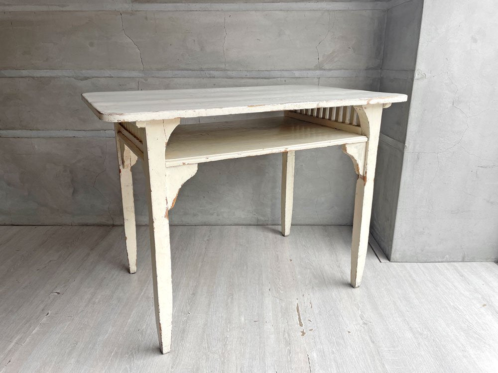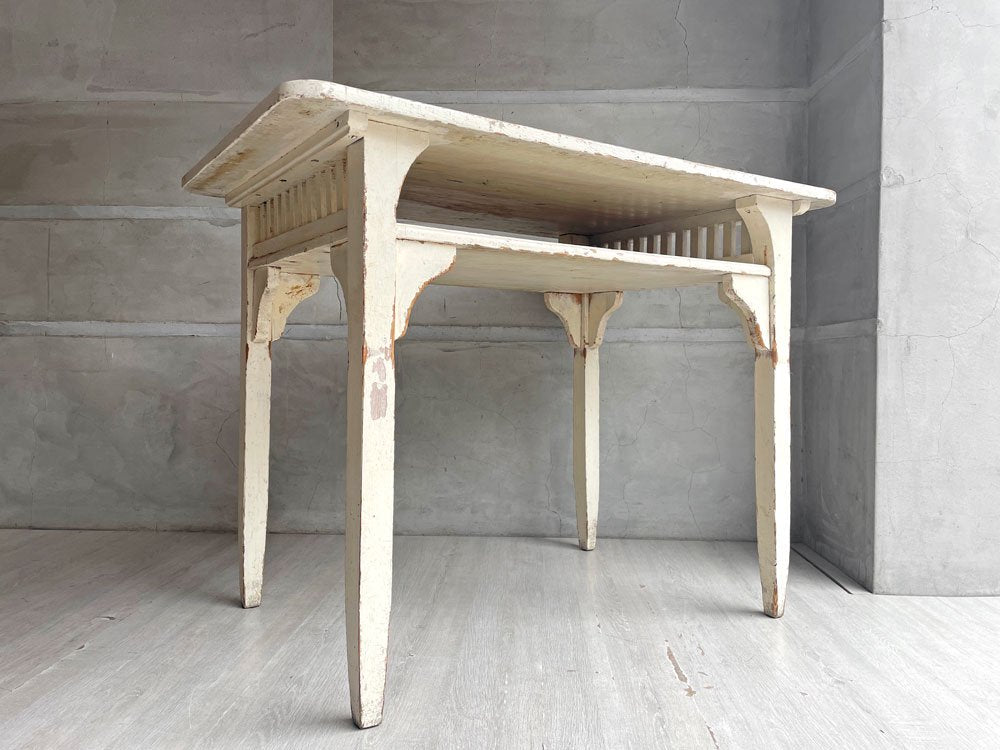 フランスビンテージ デスク ワークテーブル ホワイトペイント 格子付きラック W100 シャビーシック ♪