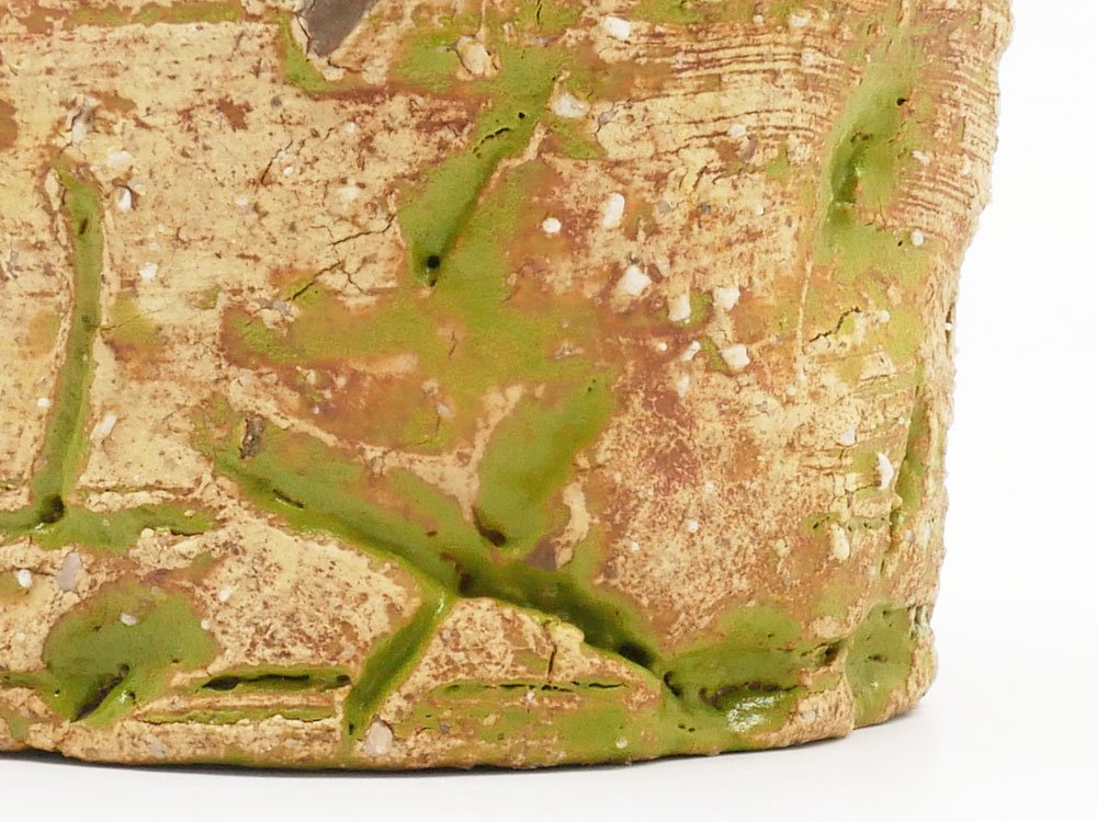 織部をはじめ、既存の釉薬や陶芸技法を取り入れつつも、それらはキムホノ氏のフィルターを通す事で、それは唯一無二の造形美へと変化。艶感やマット感、表面の削りによる平面表現に至るまで、「型にはまった綺麗さ」ではなく、「根源的な美しさ」を感じさせます。