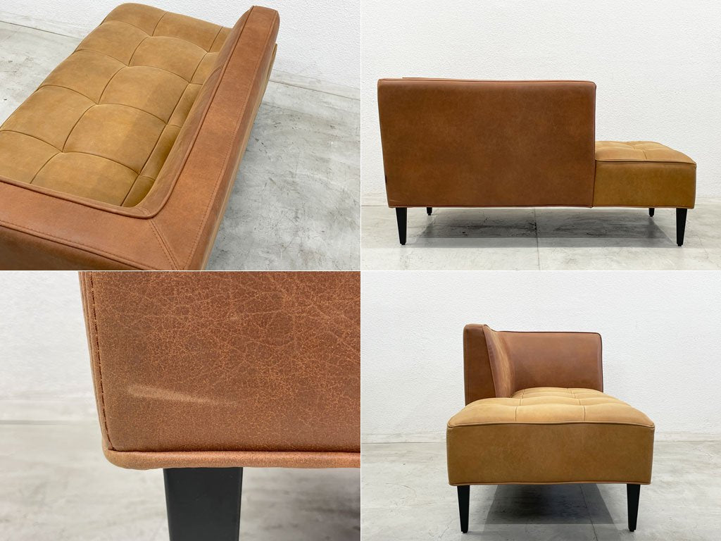 クラッシュゲート CRASH GATE トリムⅡ TRIM SOFA 左片アーム ソファ アーモンドブラウン×スーパーレザーテックス 展示品 〓