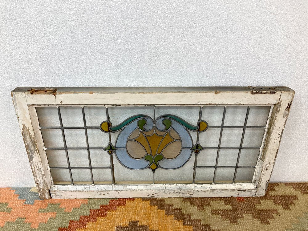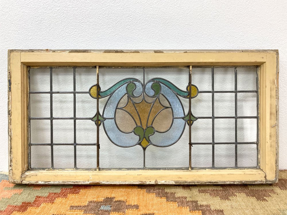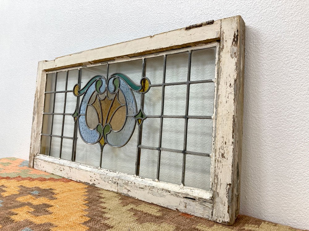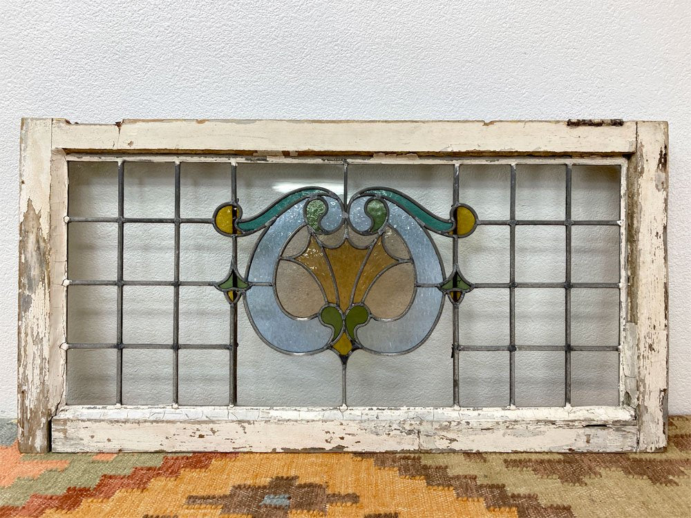 ヨーロピアンアンティーク European antique ステンドグラス 窓 ウォールデコレーション 90.5×47cm 建具 イギリス フランス ●