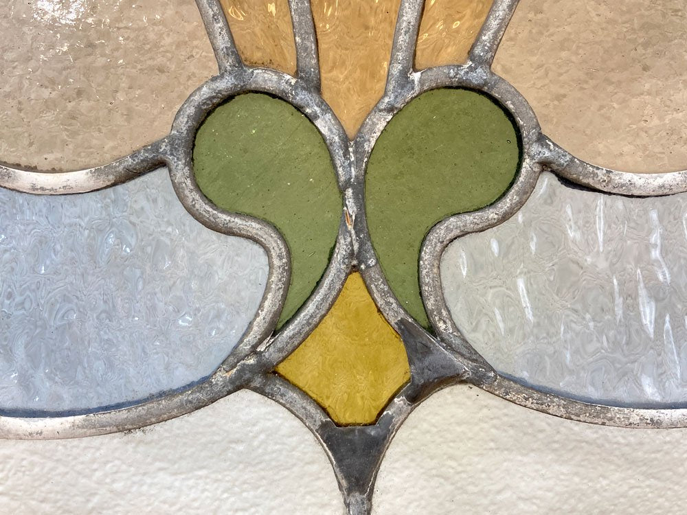 ハンドメイドによるガラスの揺らぎが光を柔らかく取りみ、アンティークならではの美しい輝きを見せてくれる1枚です。