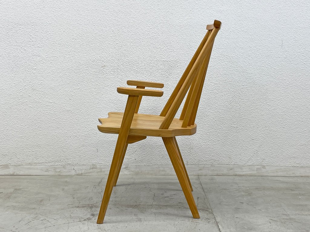 バックレストはスポークバックを採用し、アームはダイニングテーブルにも合わせやすいようコンパクトで高さが60cm。