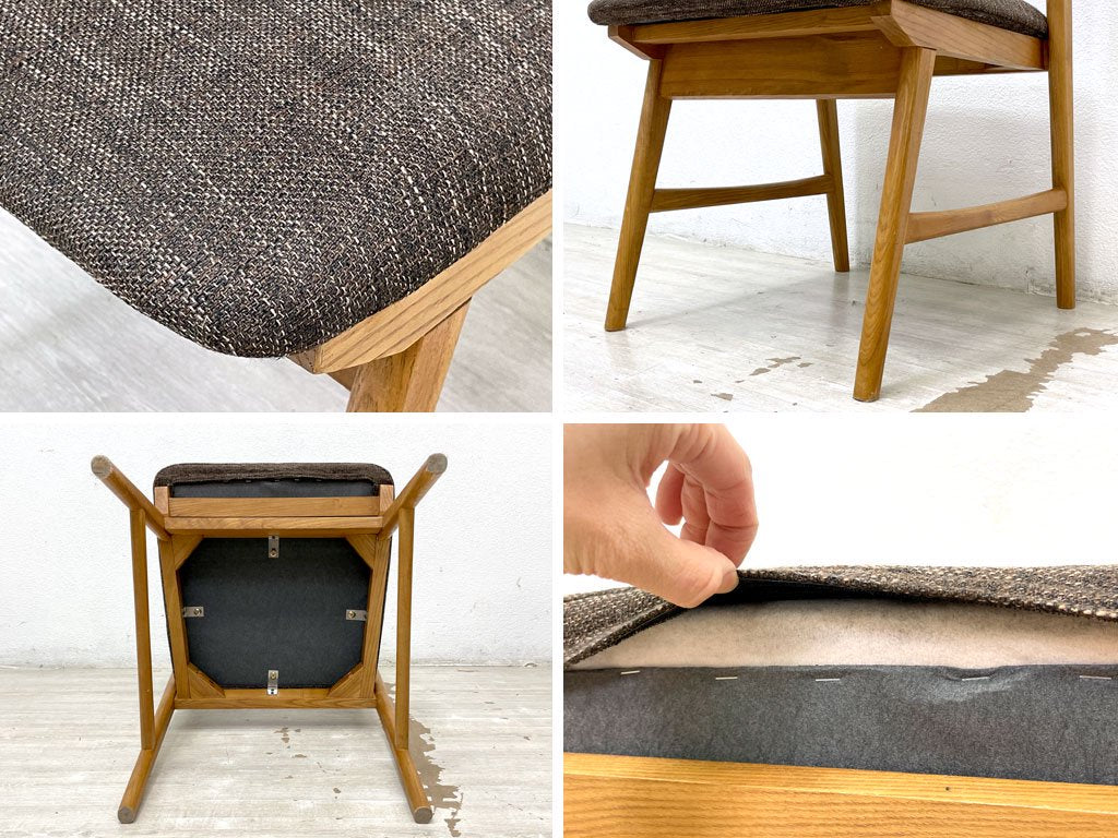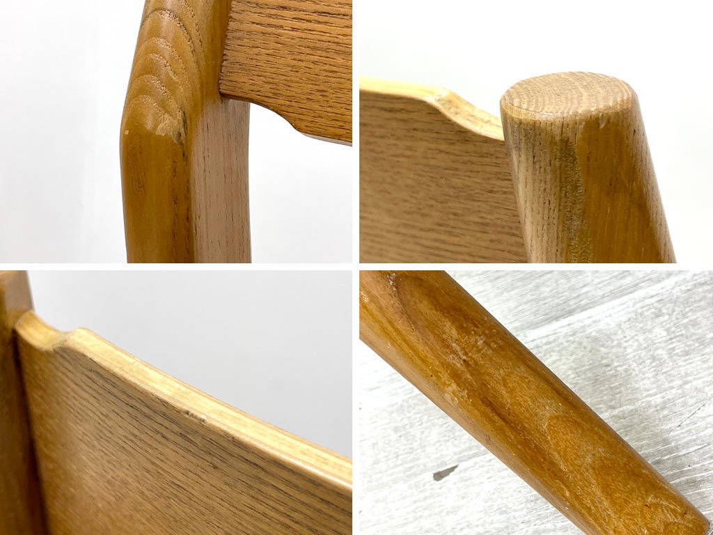 使用に伴い木部に擦れや傷、打痕、シートに薄染みや毛羽立ちなどが見受けられます。またクッションにややヘタリが感じられますが、ご使用に問題となるようなグラツキやガタツキなどはございません。コンディションを加味し、通常よりもお求めやすい価格にてご提供いたします。