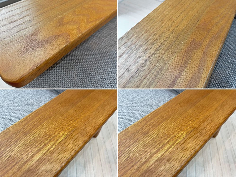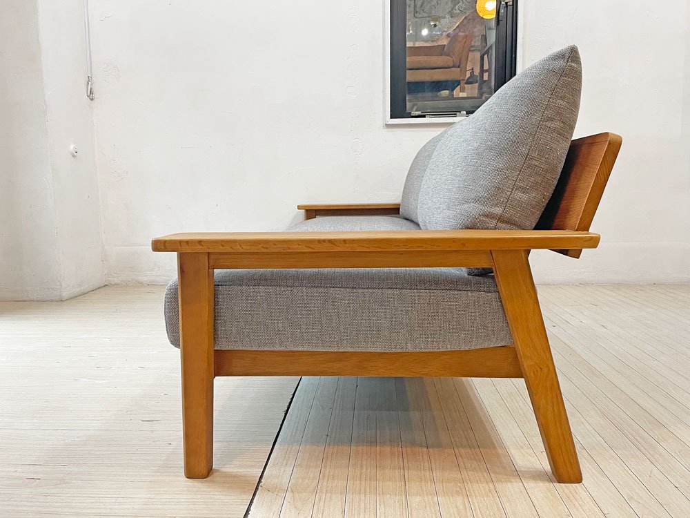オーク無垢材を贅沢に使った幅広のアームは、無垢材の質感を存分に楽しむ事ができます。また、本やリモコンなどを置くサイドテーブルとしての機能も。