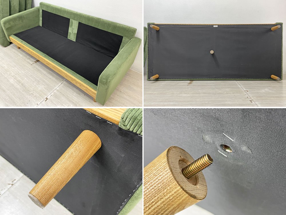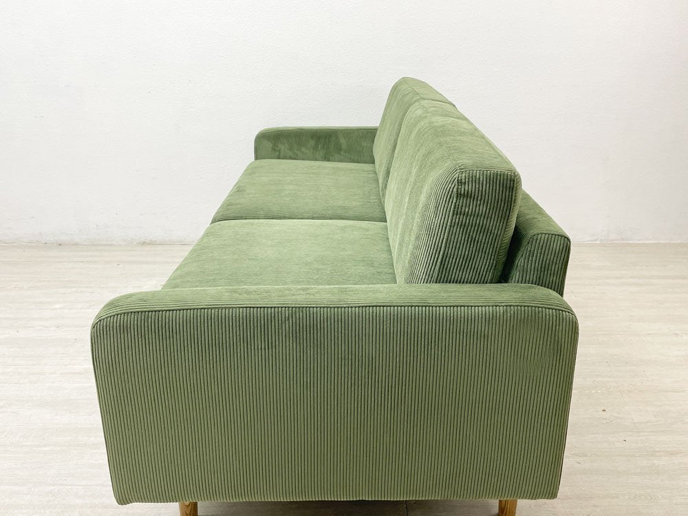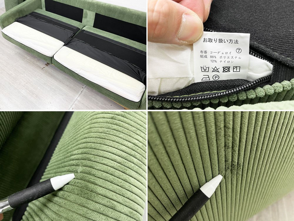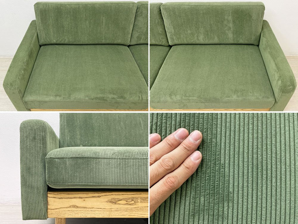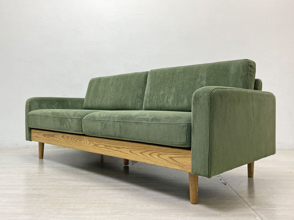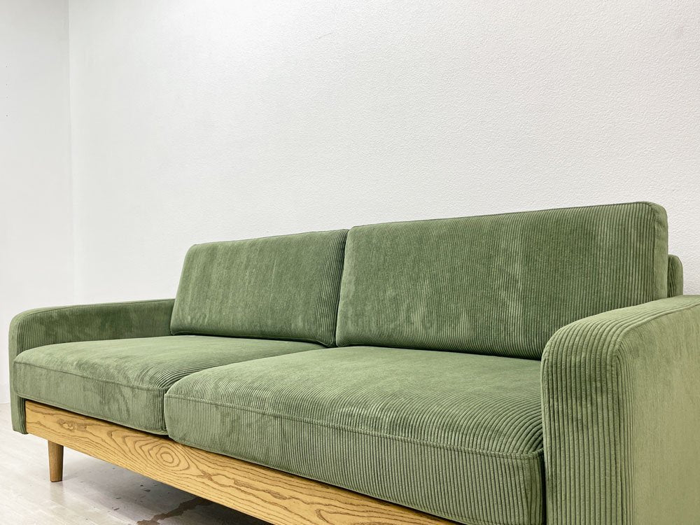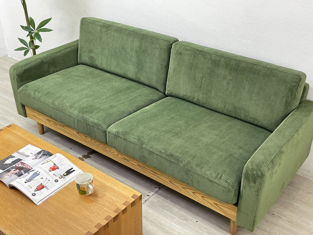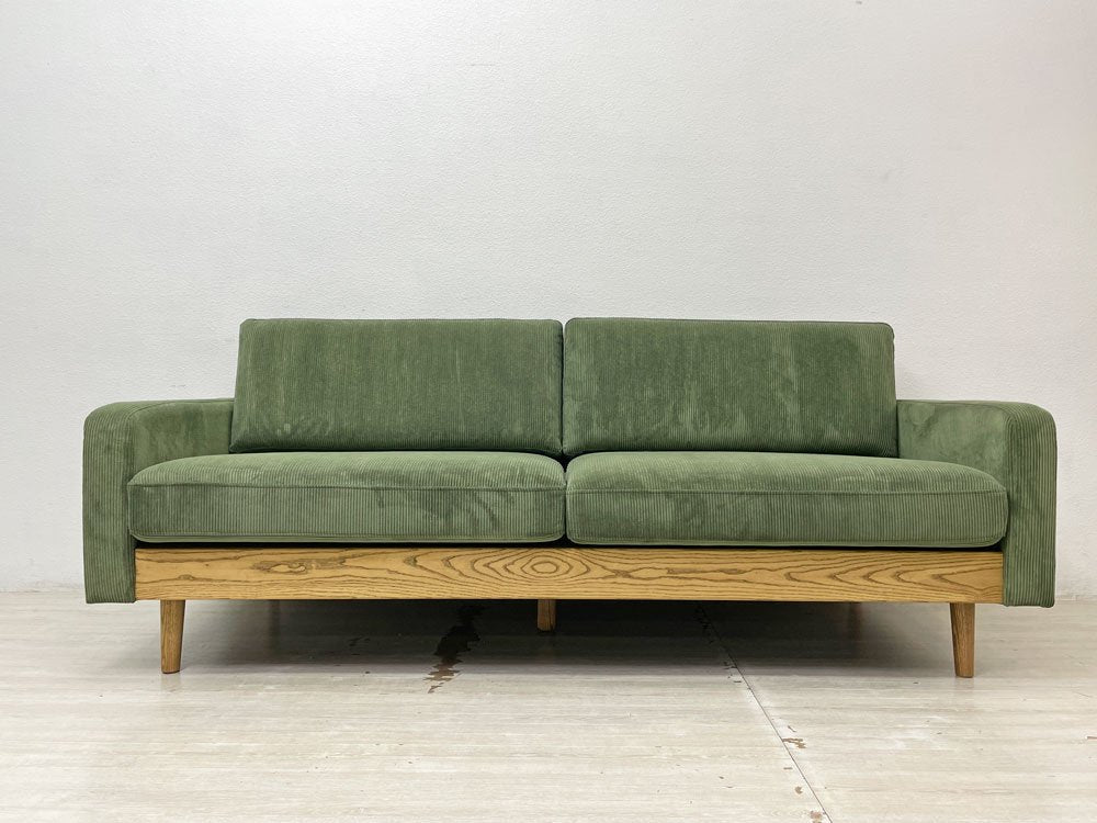 クラッシュゲート CRASH GATE イージーライフ Easy life フリート FLEET 3人掛けソファ コーデュロイ タモ無垢材 オリーブグリーン 定価¥104,500- 展示美品 ●