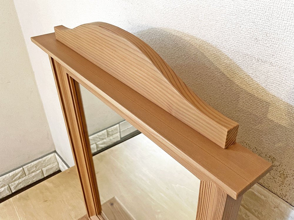暮らしをトータルで提案する同社の家具の中から、こちらはパイン無垢材を使用した壁掛け・卓上のどちらでもご使用いただける両用ミラー。