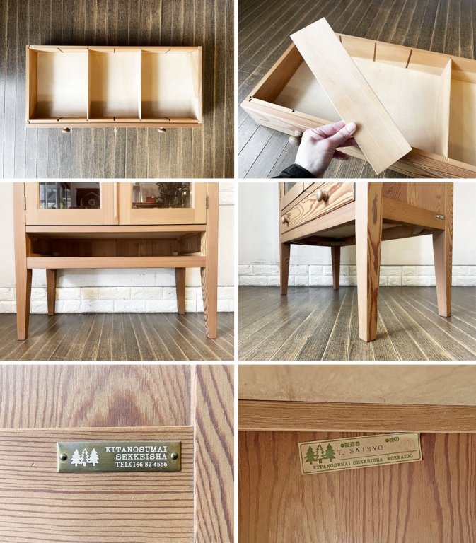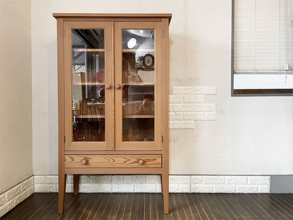 北の住まい設計社 KITANOSUMAISEKKEISHA パイン材 ガラスキャビネット カップボード H145cm 抽斗1杯 カントリースタイル 国産 旭川家具 廃番 ◎