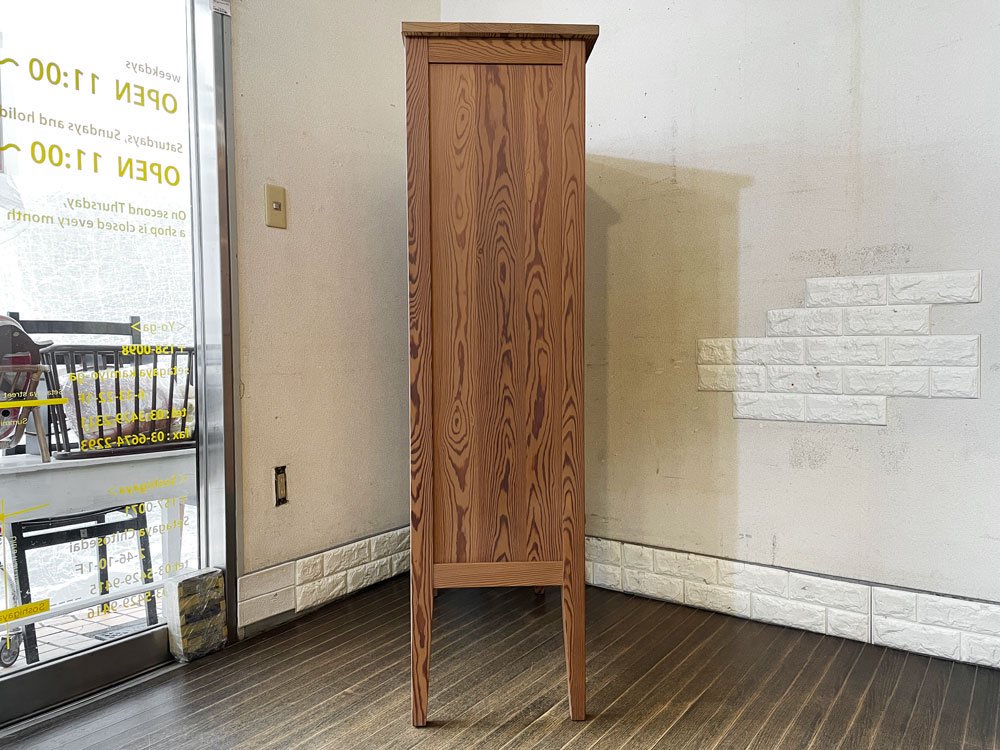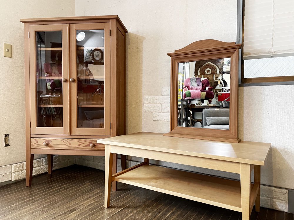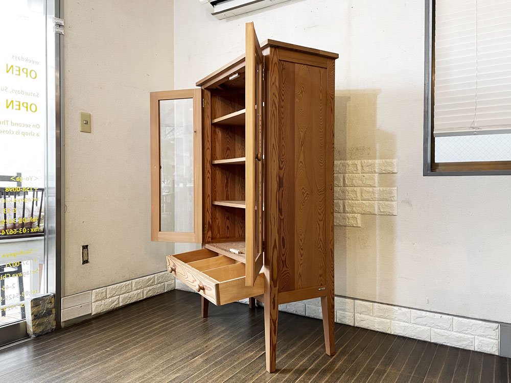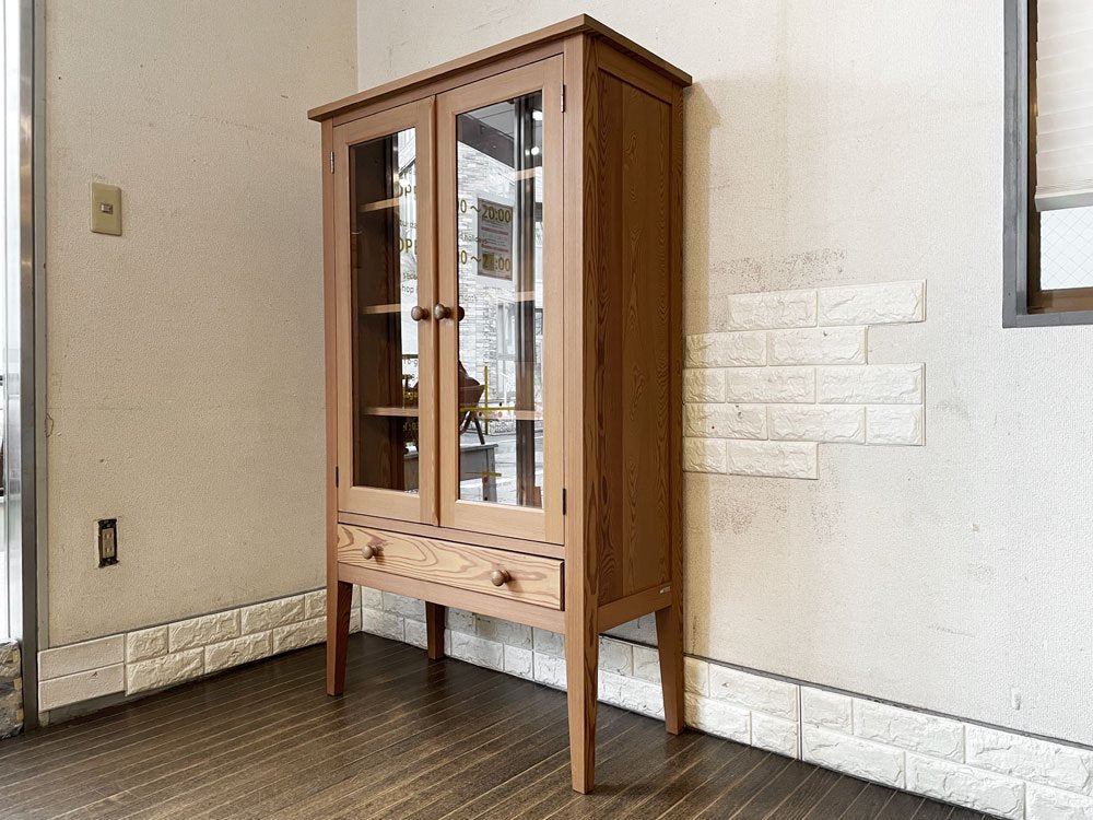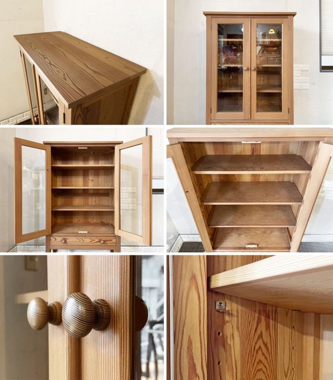 暮らしをトータルで提案する同社の家具の中から、こちらはパイン無垢材を使用したガラス扉のキャビネット。