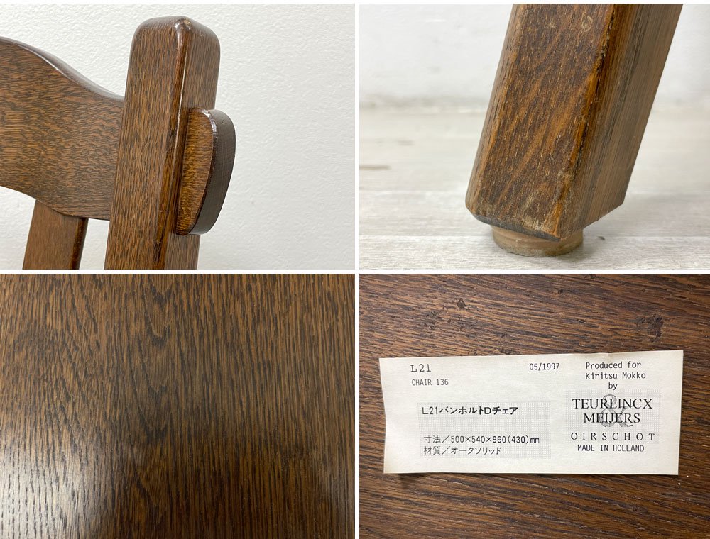 起立木工 TEURLINCX & MEIJERS L21バンホルトDチェア ダイニングチェア オーク無垢材 オランダ製 ダッチカントリー ビンテージ ダークブラウン B ●