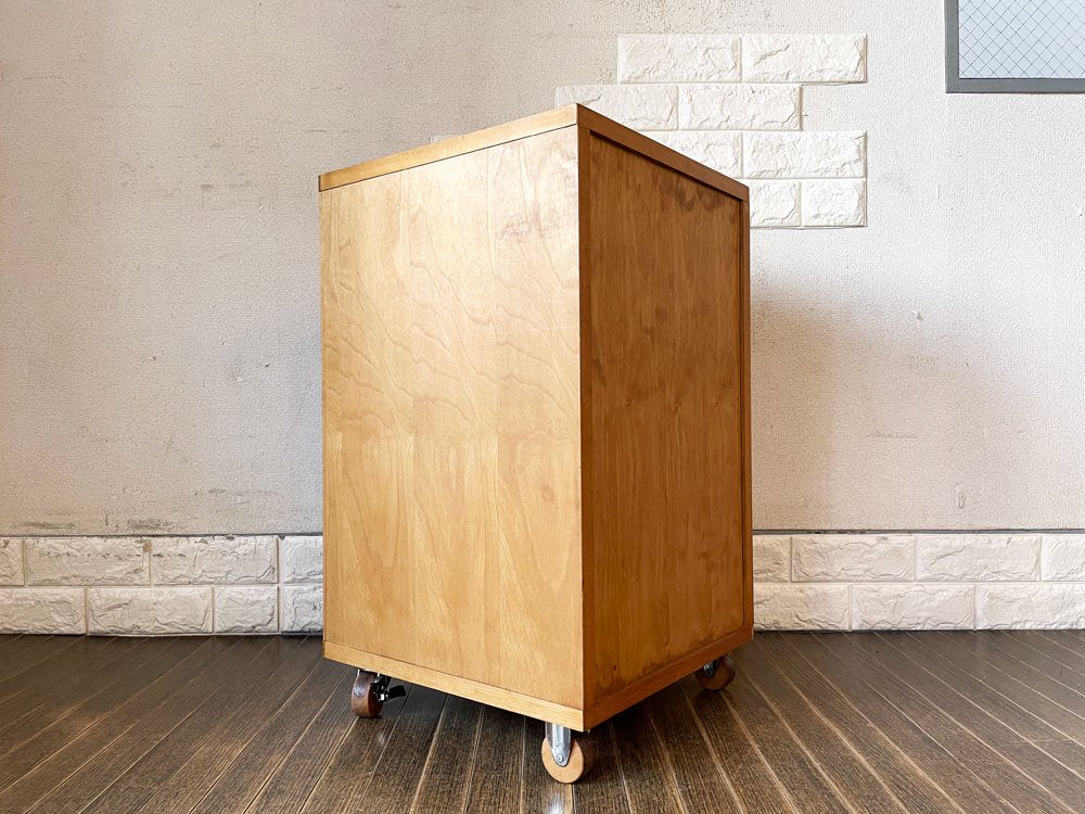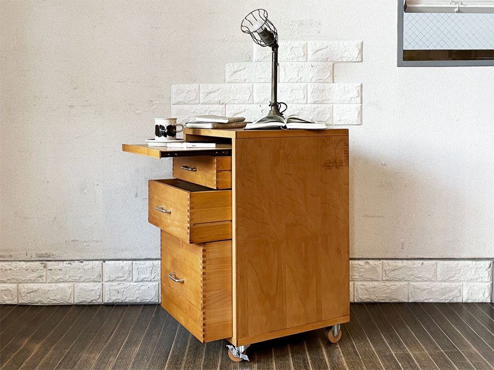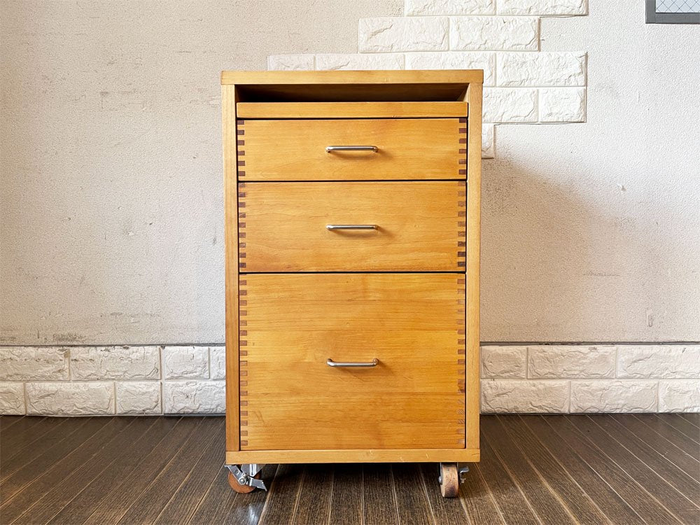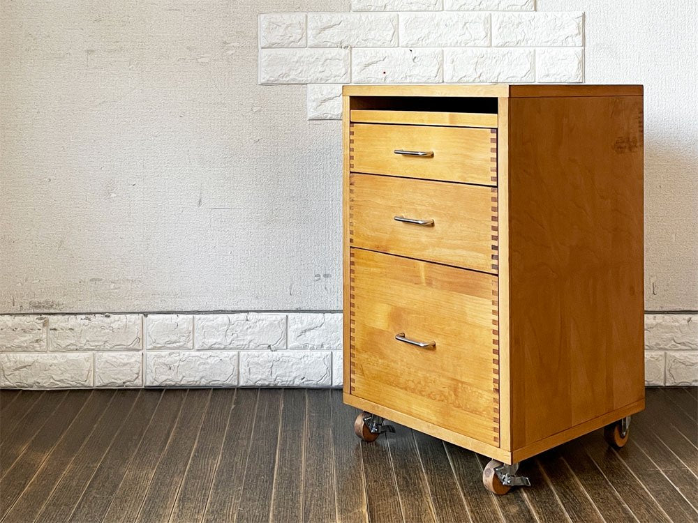 イクスス ikususu FURNITURE デスクワゴン IXDRW-03 アルダー材 3段 トレー付 木製キャスター 定価¥77,000- ◎