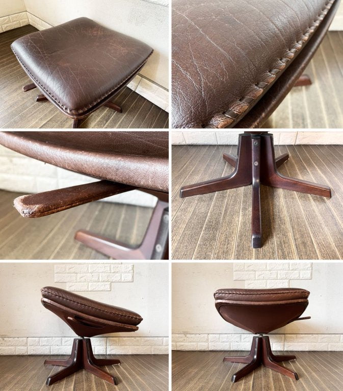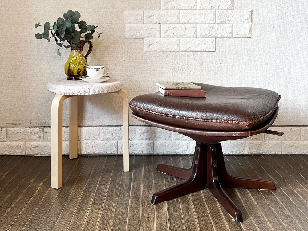 ソファやラウンジチェアに合わせるオットマンとしてのご活用はもちろん、単体のスツールとしても活躍するフットスツール。可愛らしい5本脚のフォルムとレザーの渋みを合わせもつ、北欧ならではの佇まいが魅力の逸品です。
