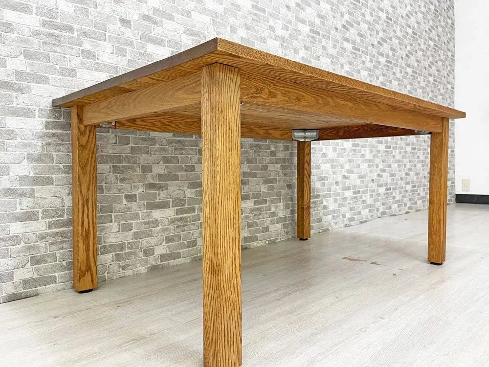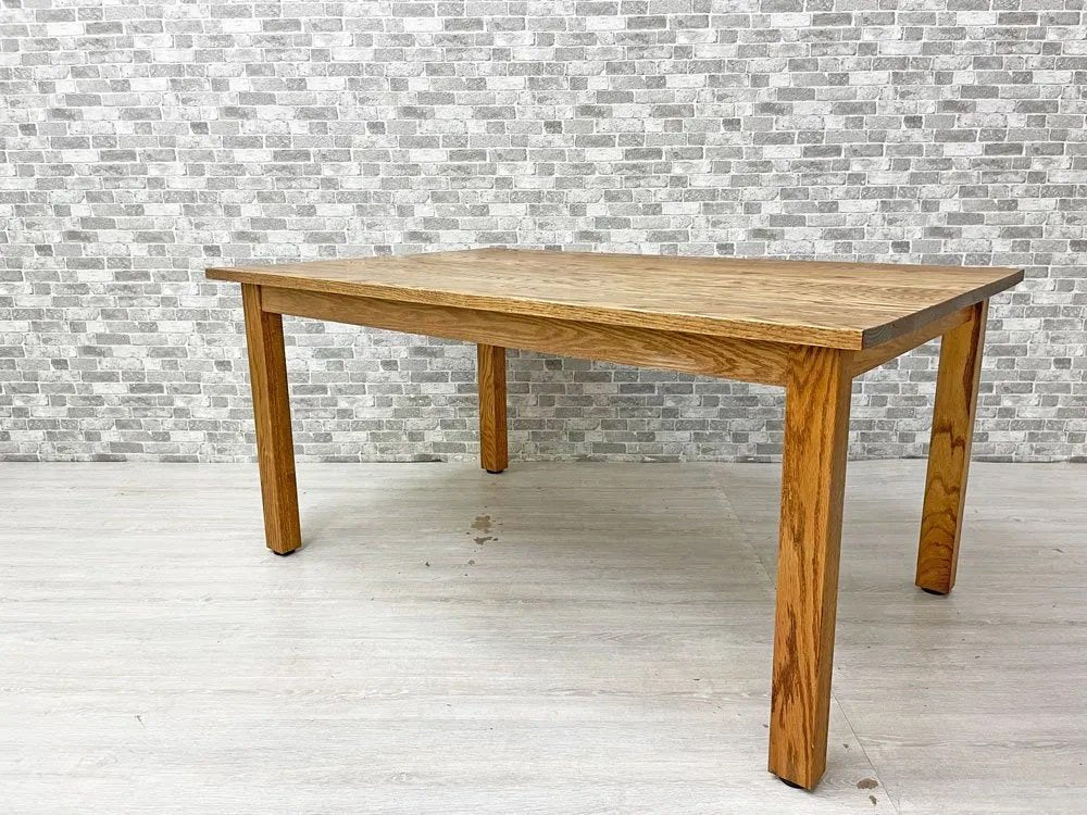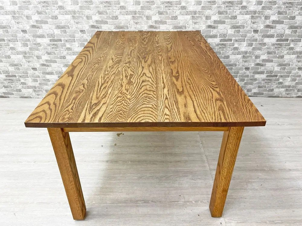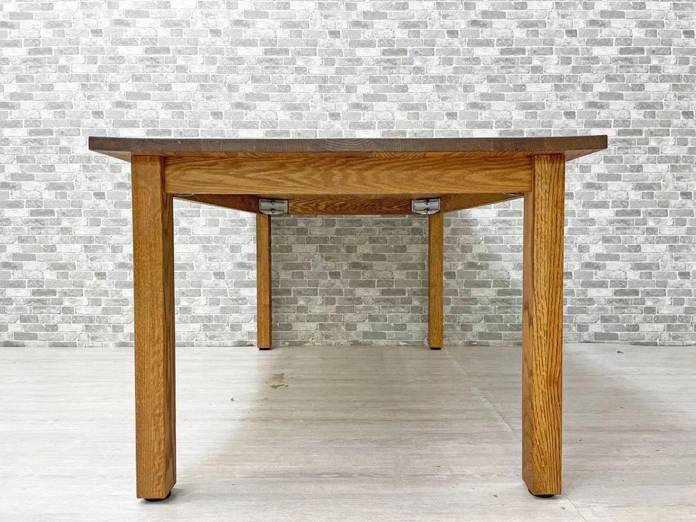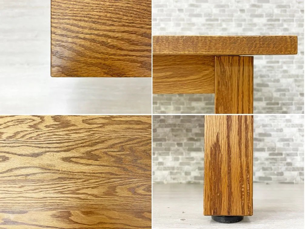 こちらはオイルフィニッシュにより心地よい木肌を残した無垢集成材のダイニングテーブル。フレームには森の木々の中で最も進化した組織構造を持ち、はっきりとした杢目により「森の王」の異名を持つオーク材を使用。余計な装飾を抑え、直線を基調にシンプルに構成する事で、木本来の表情が存分に楽しめる仕上がりとなっております。幅広いインテリアテイストに溶け込み、コーディネートに不安のある方でも安心してお使い頂けます。