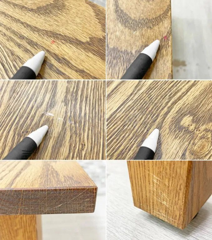 天板に赤いペン跡が数か所、軽微な反り、擦り傷がございますが、著しく目立つようなダメージはございません。今後も安心してお使い頂けるコンディションを保っております。