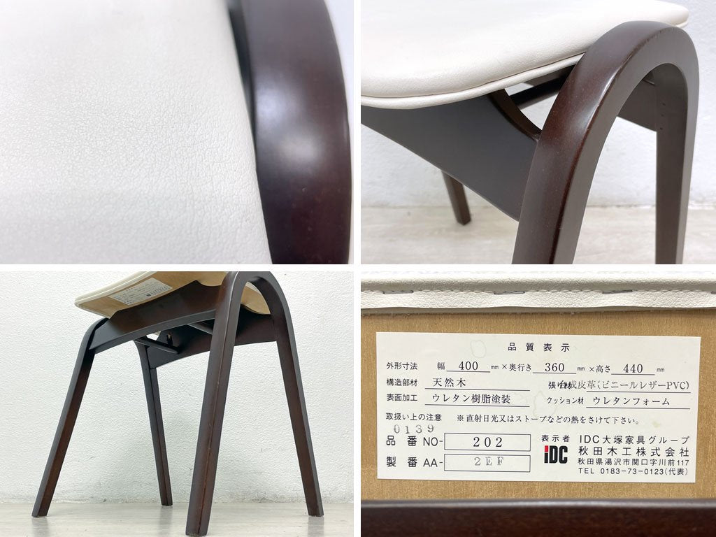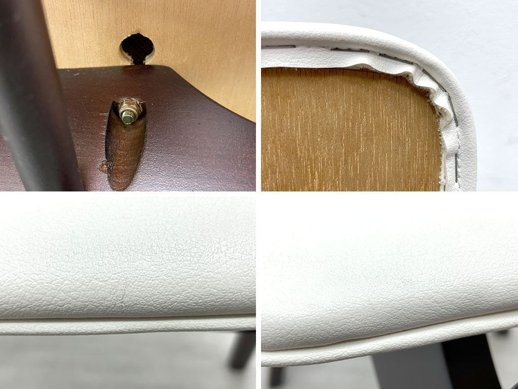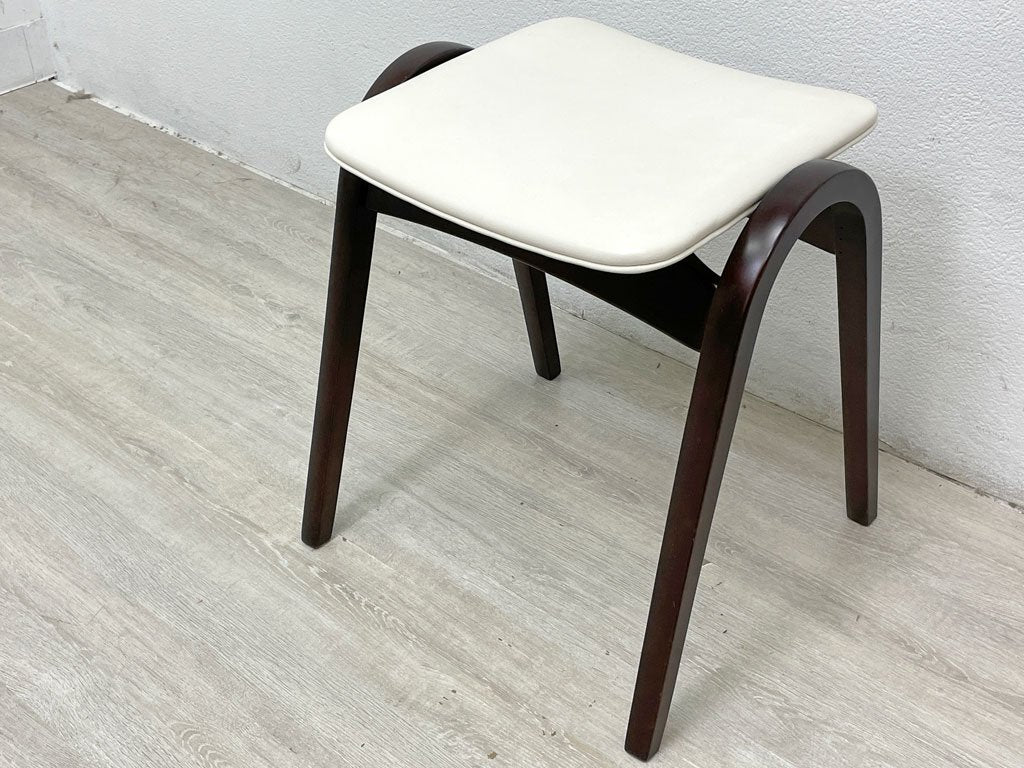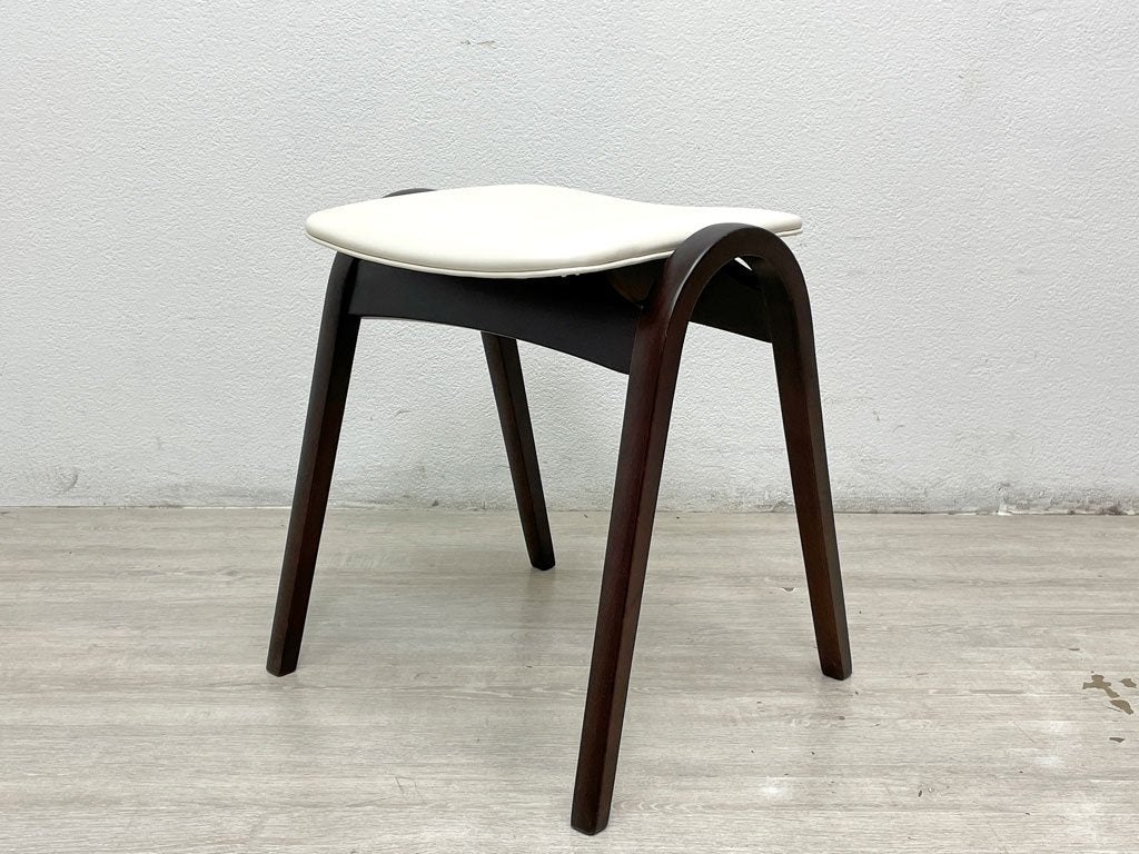 秋田木工 Akimoku No.202 剣持スツール 剣持勇 スタッキングスツール PVCレザー ホワイト レトロ ●