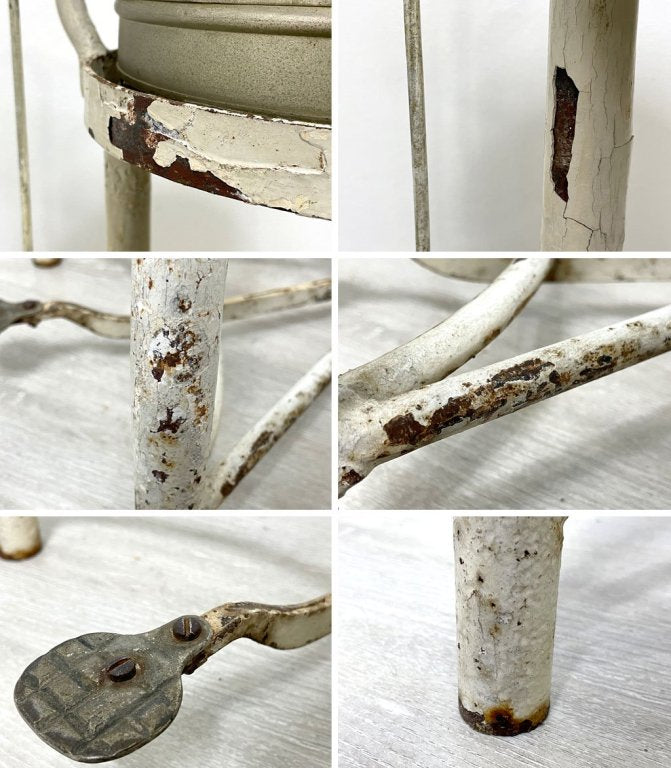 経年で風合いを増したノスタルジックな佇まいが美しく、無骨な素材感ながら時代を経て温もりをましたペイントの剥がれや全体のくすみ具合がなんとも言えない表情を作り出しております。