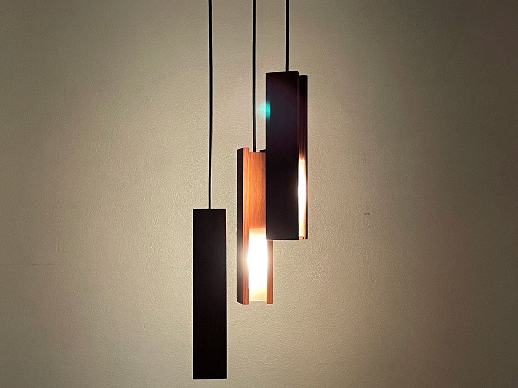 ウォールナット無垢材と磨りガラスを使用し、1点1点手作りされたこだわりの詰まった照明。