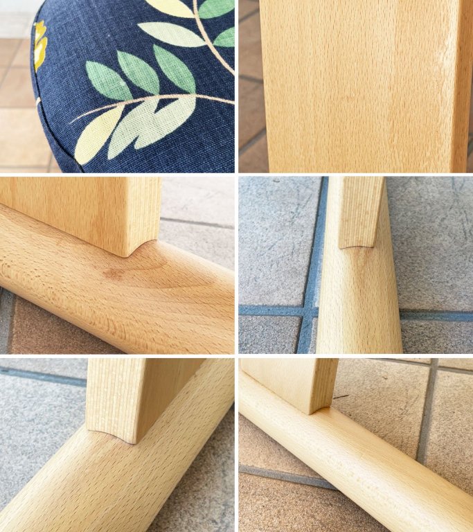 使用に伴い、木製フレームには細かな傷や打痕、取り切れない極僅かな汚れ、スレや日焼けが御座います。ファブリックにも極僅かなスレと色褪せが見られ、カバーの極一部に染み汚れが御座いますが美観を損ねるものはなく、全体的に使用感の少ない良好な状態を保っております。座面昇降は問題なく動作し、クラックやガタツキもなく、これからも気持ちよくお使い頂けるコンディションとなっております。