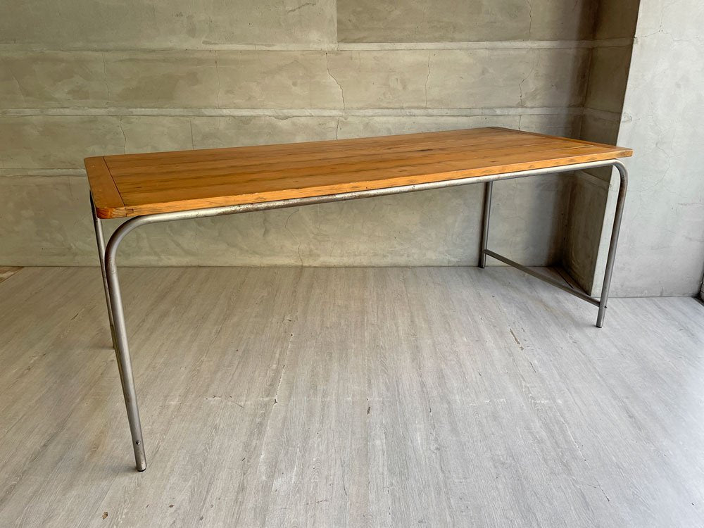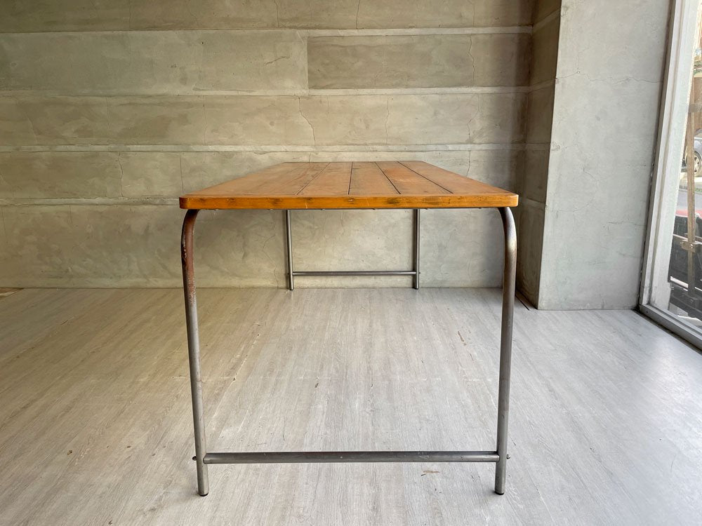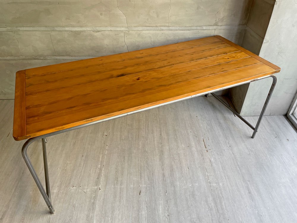 素朴でありながら力強いパイン材天板とシンプルなアイアンフレームで構成され、工業素材と自然素材のコントラストから生まれる風通しの良い佇まいです。