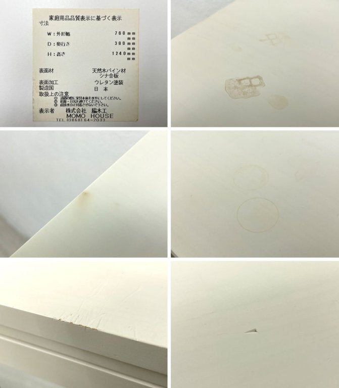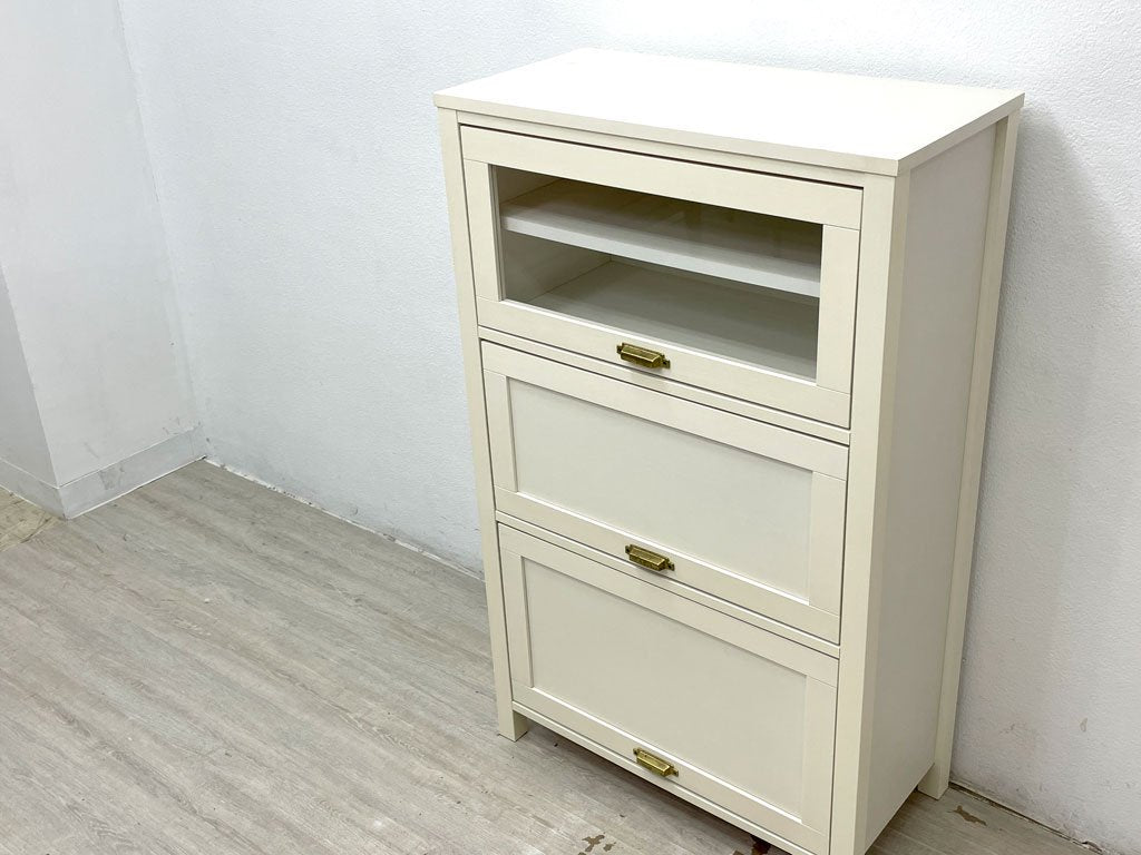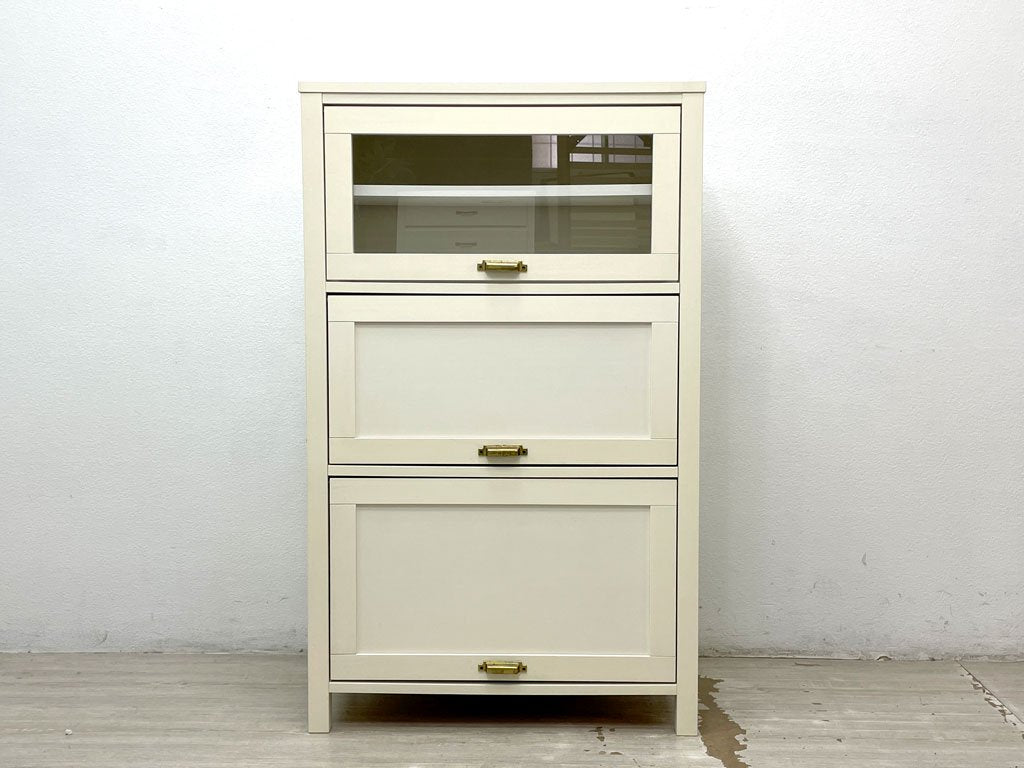 モモナチュラル MOMO natural シエル CIELE フラップ扉 3段キャビネット 3 DOOR CABINET パイン無垢材 ホワイト 定価¥59,500- ●