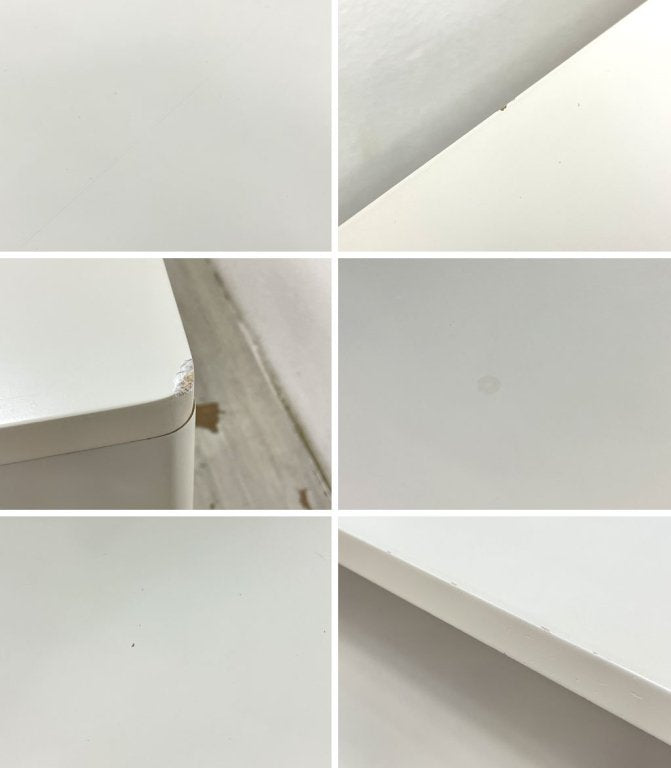 使用に伴う擦れや小傷、ペイントロスや一部端部の欠け、補修痕、天板裏のネジ跡等がございますが、美観を大きく損ねる様な汚れや、機能を損なうような大きなダメージなどは特にございません。