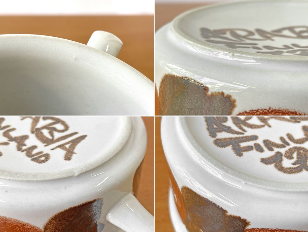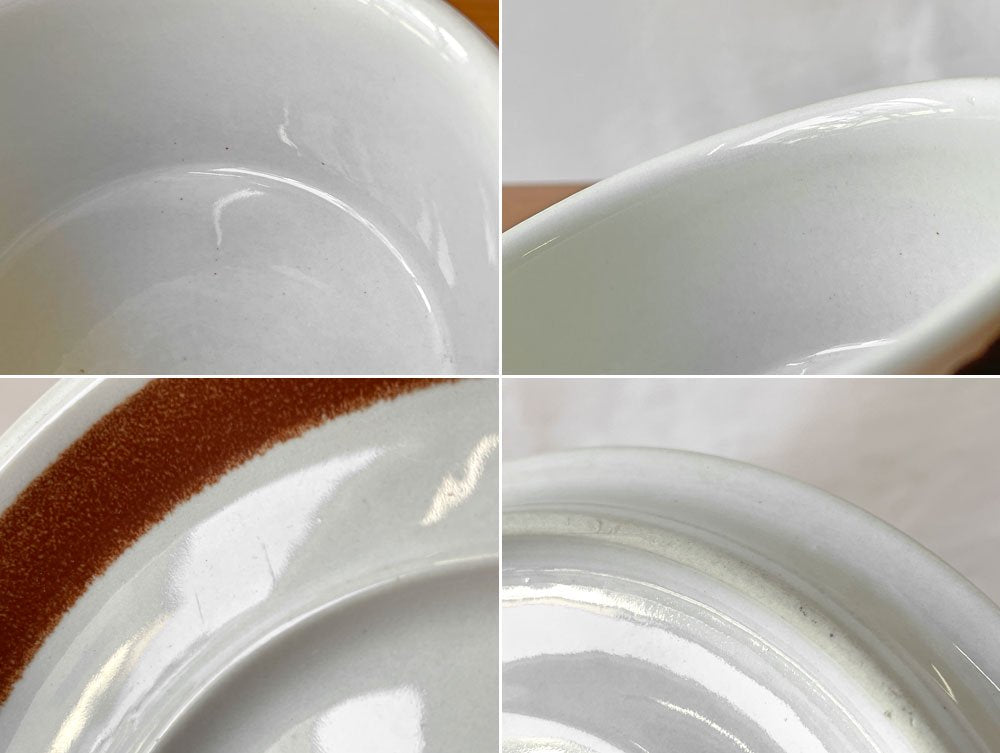 こちらはビンテージ品です。使用に伴う細かな擦れ傷のほか、うっすらとしたスポット、高台に微細なチップ等はございますが全体的に良好なコンディションです。今後とも雰囲気を楽しみながら気持ちよくお使い頂けます。
