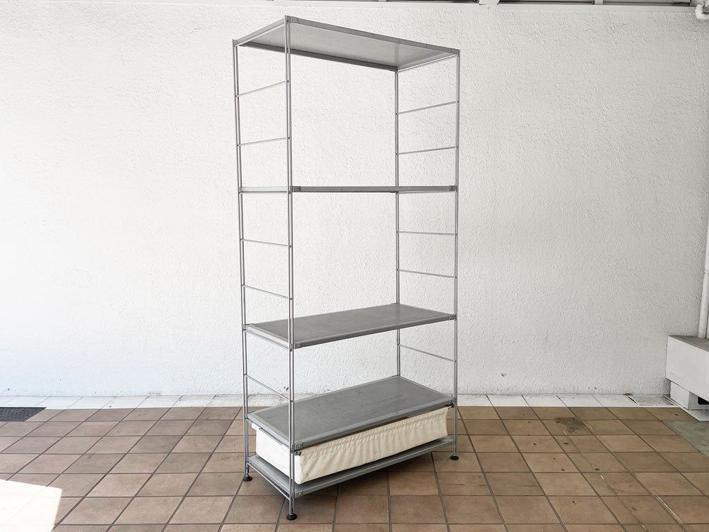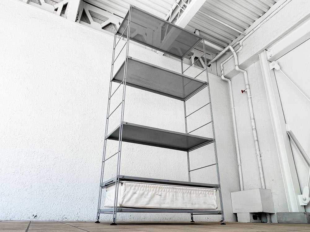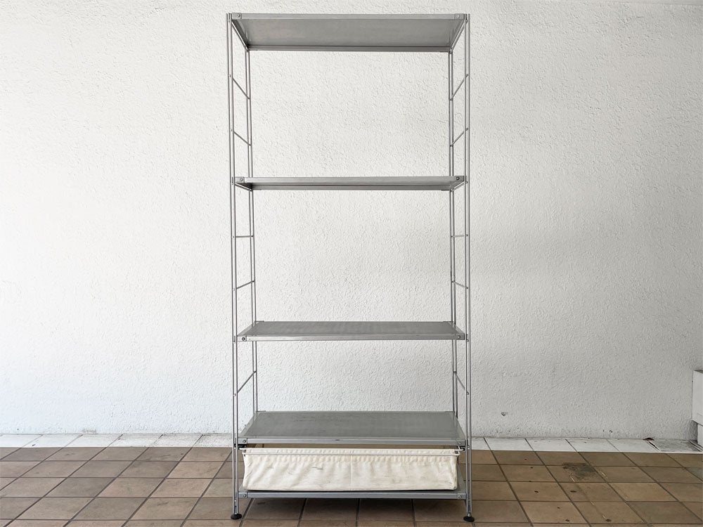 無印良品 MUJI スチールユニットシェルフ 棚板5枚+帆布バスケット パンチングボード ライトグレー W84cm ◇