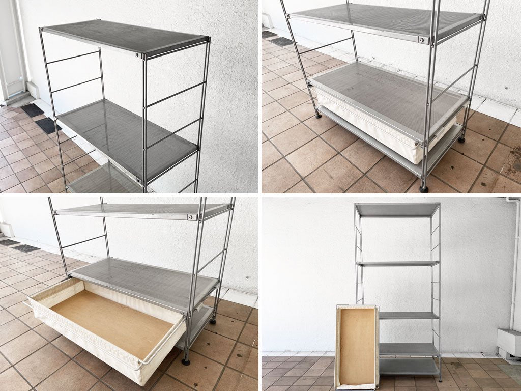 どんな空間にも難なく馴染む無印の定番収納となっておりますが、今回入荷したのはパンチングボードによる有孔棚板を5枚備えた珍しいモデル。
