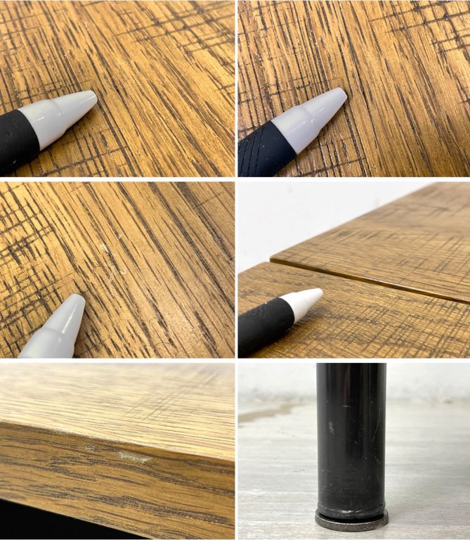 使用に伴う擦れ傷のほか、細かな打痕、天板には木目の境目に僅かなふくらみや端に僅かな反りがございますが、いずれも大きく目立つものではございません。昇降機能も問題無く動作し、今後とも気持ち良くお使い頂けるUSED品としてお概ね良好なコンディションを保っております。
