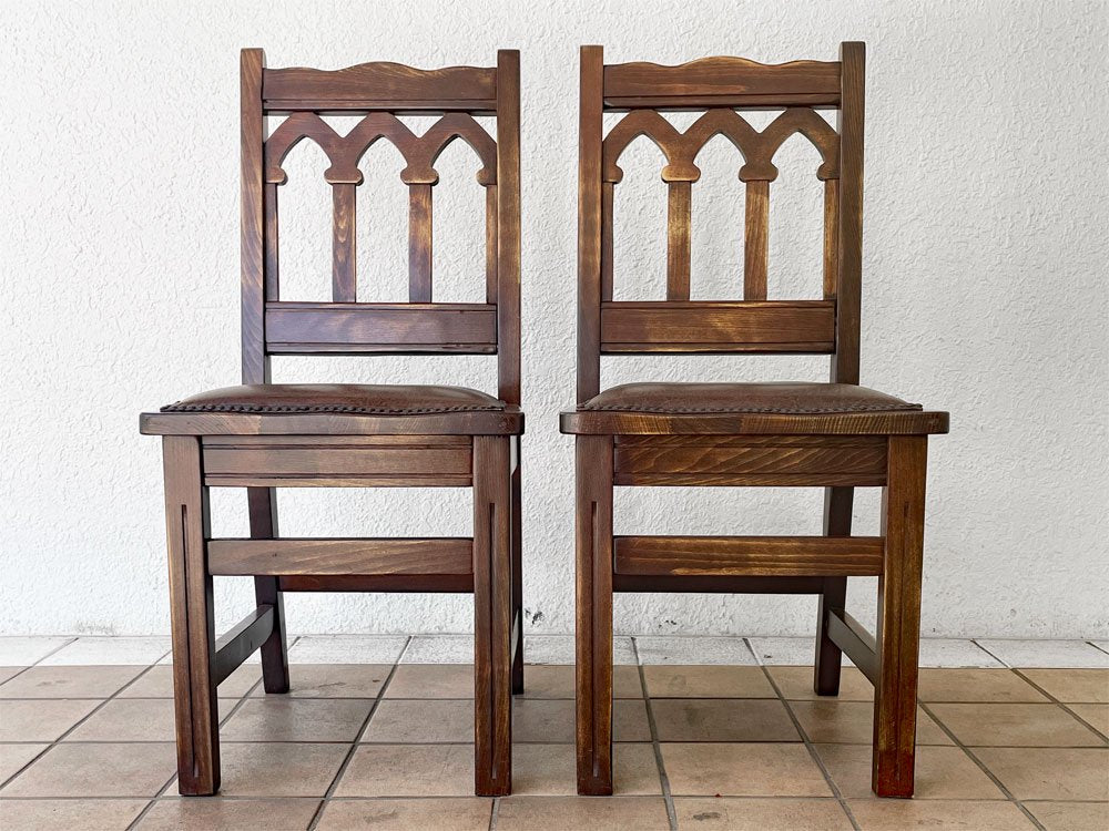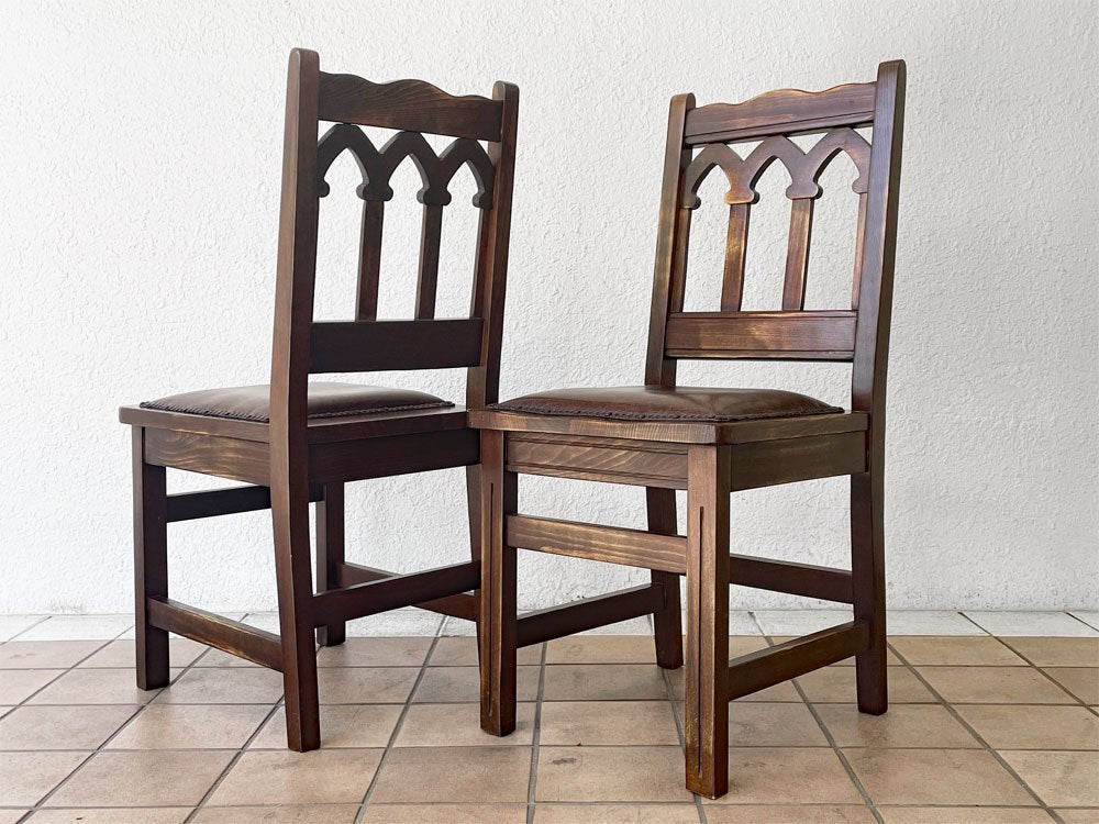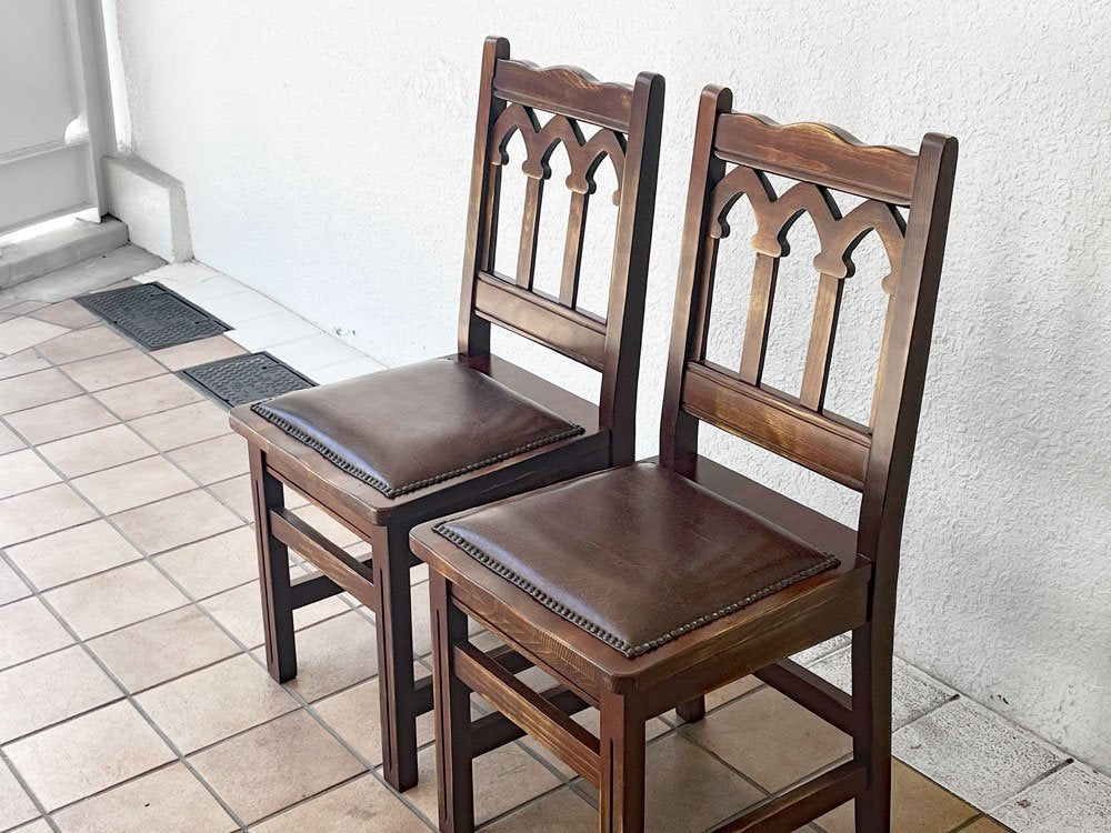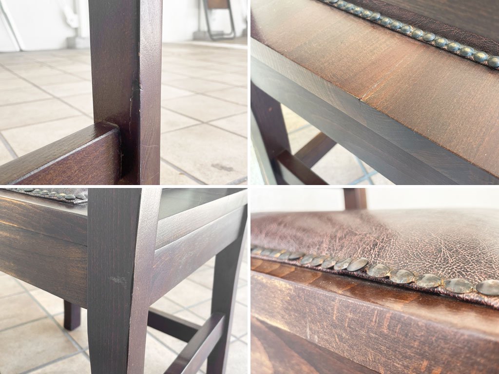イデア IDEA ダイニングチェア YA-5R 2脚セット ビーチ材 PVCレザー アンティークスタイル クラシカルデザイン 合計定価40,800円 ◇