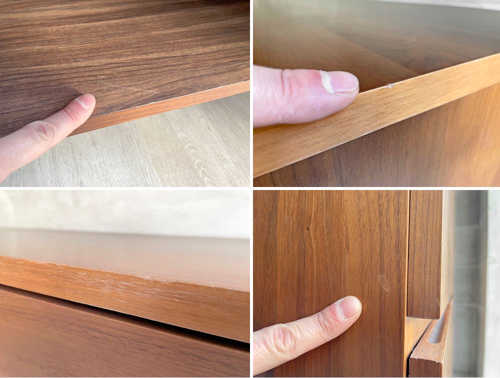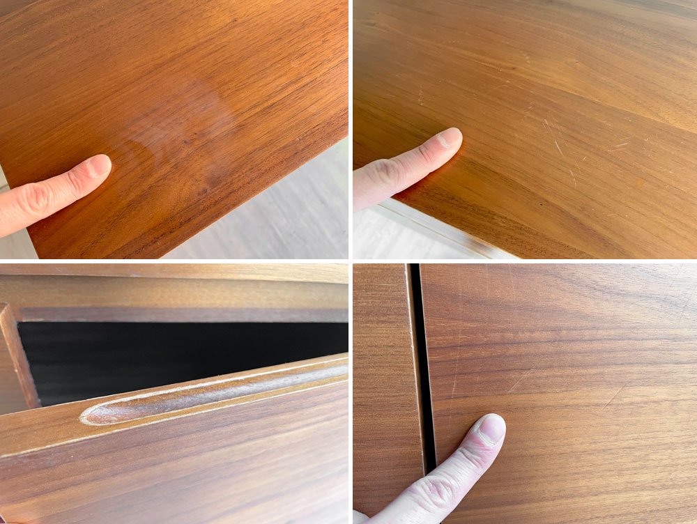 天板にコーティングの白濁が見られるほか、全体的に細かな打痕や線傷、擦れが散見されます。通常使用に支障を来すような不具合はなく、中古品としては概ね良好なコンディションを保っております。