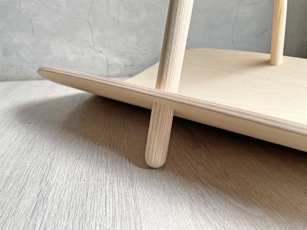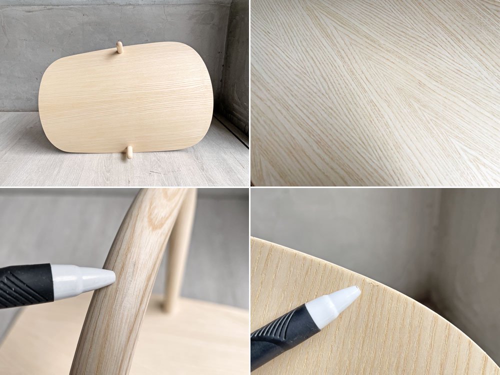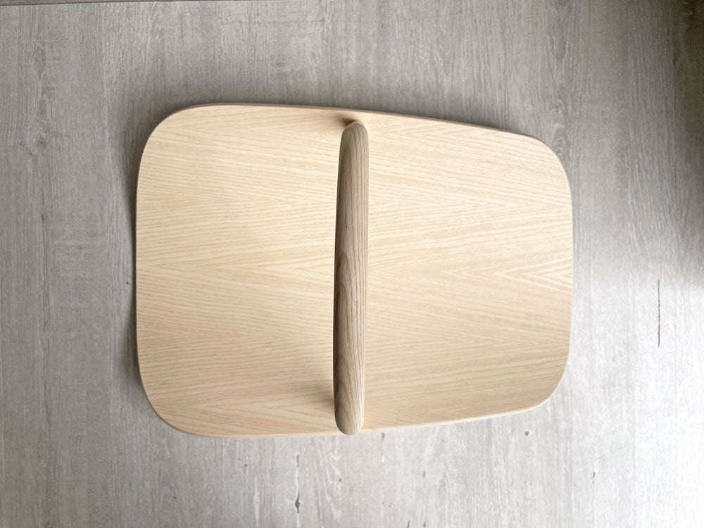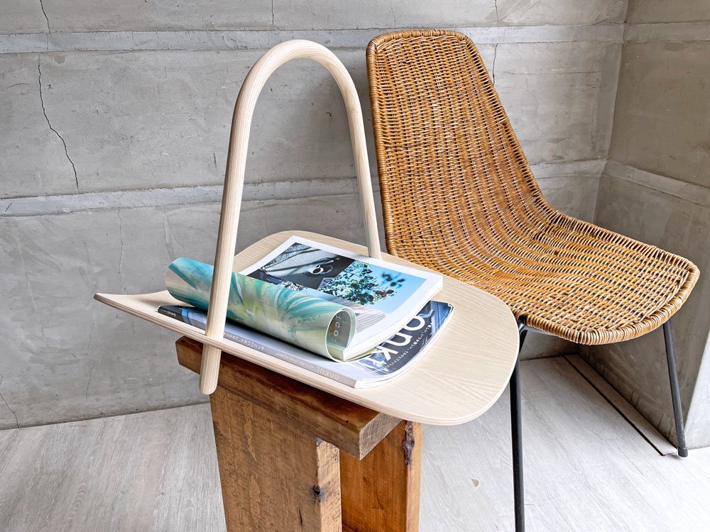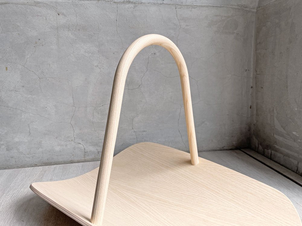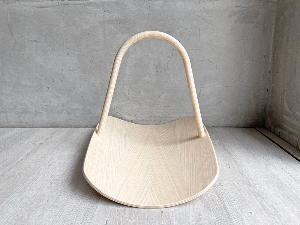 なだらかなカーブを描くアッシュ材のプライウッドに、曲木のハンドルを付けたシンプルなシルエット。