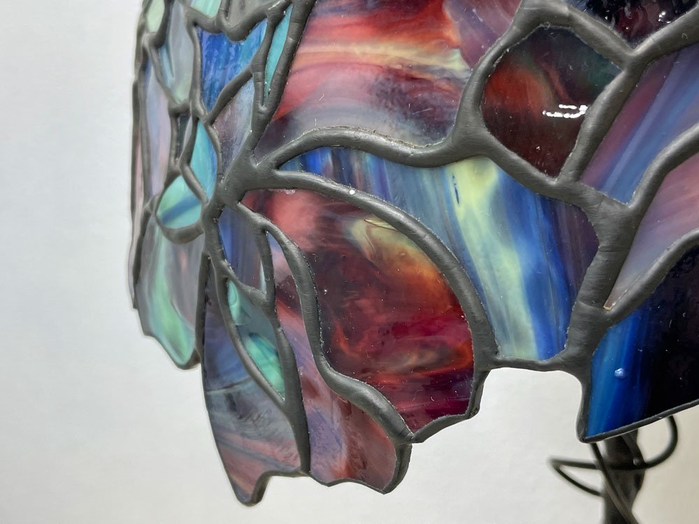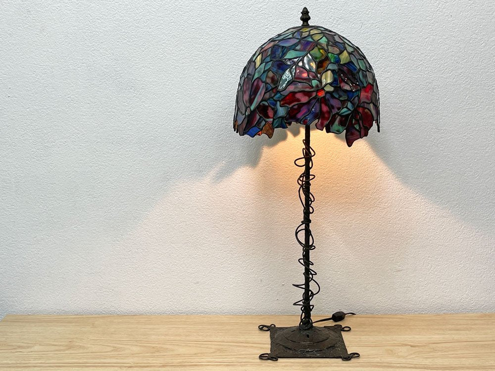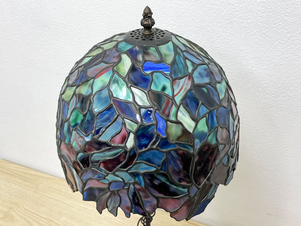 ステンドグラスが美しいティファニースタイルのテーブルランプ。リンカーン大統領やオードリー・ヘップバーンなど、米国の名だたるセレブリティを魅了したティファニーが作り出したスタイルです。